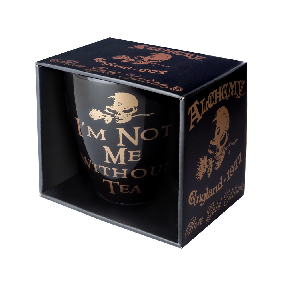 Прекрасная кружка, украшенная розово-золотой надписью «Я не я без чая» не может существовать без утренней чашки чая. Значит, она создана для вас! Высококачественная фарфоровая кружка блестящего черного цвета с красивым розово-золотым принтом. Примерная емкость - 400 мл. Устойчива к использованию в микроволновой печи, можно мыть в посудомоечной машине.