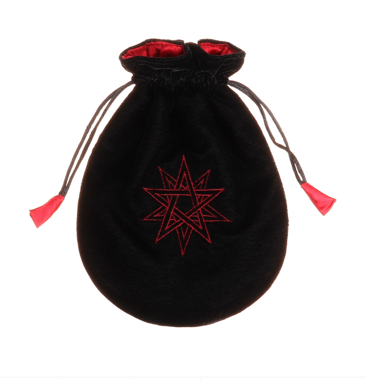 Мешочек для карт, изготовленый из качественной бархатной ткани и имеющий внутреннюю подкладку, изготовлен в Англии дизайнерами бренда Eastgate. Наши прекрасно выполненные мешочки для Таро украшены вышивкой с магическими символами и подкладкой дополнительных цветов. Каждый мешочек закрывается на шнурок, а подкладка отделана вручную. Эти оригинальные мешочки достойны даже самого взыскательного владельца Таро.