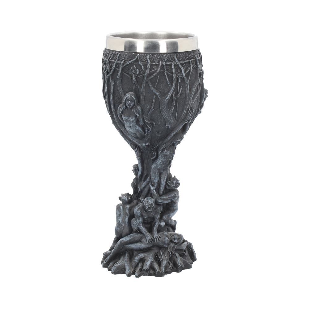 Покажите свою темную сторону с помощью этого красиво оформленного кубка. В темно-серых тонах на этом сосуде отображены мрачные картины боли и пыток. Попав в ловушку своих демонических похитителей, прекрасные девы обречены на вечные страдания. Отлитый из высококачественной смолы и раскрашенный вручную, этот кубок с изображением боли идеально подходит для тех, кто любит мрачную сторону жизни. Изделие изготовлено из полиcтоуна со вставным стаканом из нержавеющей стали, раскрашено вручную и отполировано. Имеет высоту 20 см и диаметр около 14 см. Предназначен для использования по прямому назначению, а так же в декоративных целях. Мыть только вручную. Объем бокала - 200 гр. 20 см.