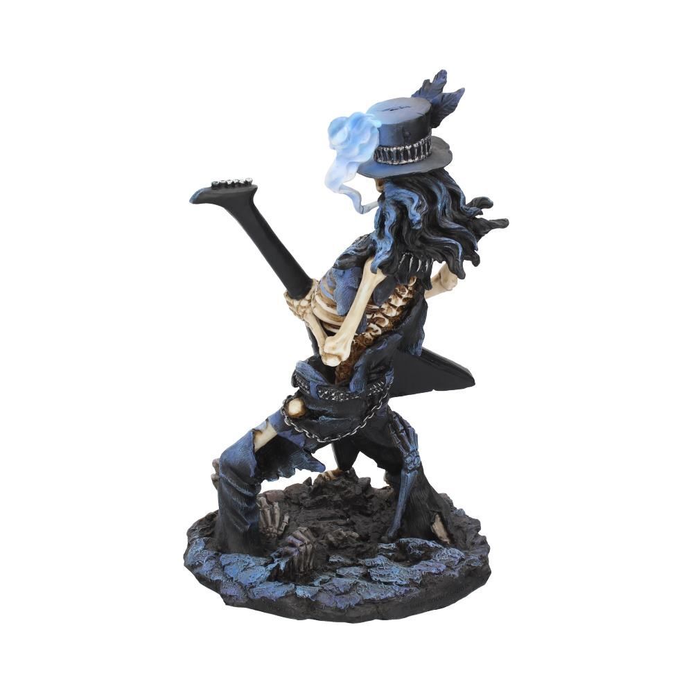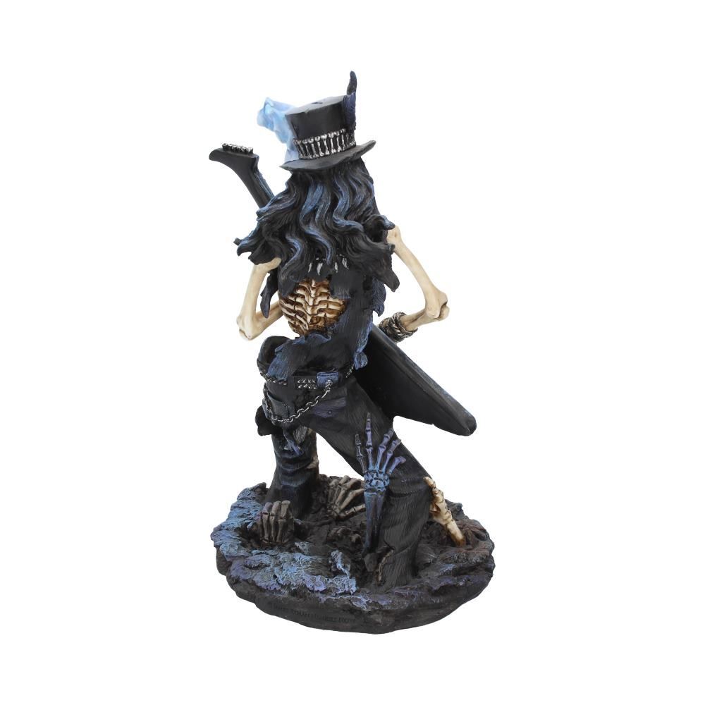 Эта хард-роковая вещь родилась из художественного произведения Джеймса Раймана, а затем была увековечена в полистоуне альтернативным брендом Nemesis Now. На туманном кладбище, освещенном луной, в обрамлении мертвых деревьев, этот скелет принимает позу, играя на черной летающей гитаре V. Руки скелетов тянутся вверх из-под земли, некоторые хватаются за ноги, другие сложили пальцы в знак рога. Длинные черные волосы струятся из-под черной шляпы, а на шляпной ленте, закрепленной серебряным черепом, висит длинное черное перо и пиковый туз. Сигаретный дым туманом вьется вверх и образует кричащий череп, подразумевая, что они курят чью-то душу. Отлитая из тончайшего полистоуна, а затем искусно раскрашенная вручную, эта фигурка заставит любого музыканта взять в руки инструмент и играть! 24 см.