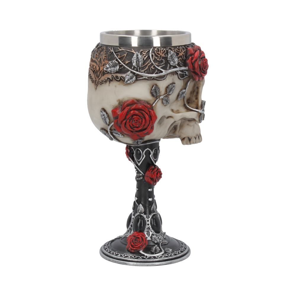 Поднимите тост за жнеца с очаровательным кубком Gothic Roses, разработанным фантастическими художниками бренда Nemesis Now. Черная ножка и основание этого кубка окаймлены серебряной окантовкой, красные розы распускаются на серебряных лозах. Серебряные усики ползут вокруг черепа, который образует корпус кубка, розы украшают щеку и виски. Лоб покрыт черным, золотым филигранным узором, напоминающим царственную тиару. Отлитый из тончайшего полистоуна, а затем искусно расписанный вручную, этот изысканный кубок поставляется со съемной вставкой из нержавеющей стали для удобства чистки. 18 см.