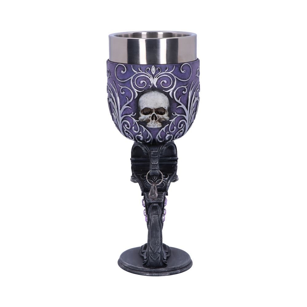 "Когда я смотрю в твои глаза, я вижу обещание любви" Украшенный сложными серебряными барочными деталями, поднимающимися от металлического основания к ободку из нержавеющей стали, этот кубок станет прекрасным дополнением к любой коллекции Fantasy. В центре тщательно вылепленной ножки находится выступающий вперед макабрический череп. Над ним располагается еще один череп меньшего размера, а позади него висит драгоценный камень в форме капли. Отлитые из высококачественного полистоуна и тщательно раскрашенные вручную, эти кубки Deaths Desire могут быть соединены вместе, чтобы сформировать форму сердца, идеальную для того, чтобы разделить ее с вашей мистической любовью. Предназначен для использования по прямому назначению, а так же в декоративных целях. Мыть только вручную. Объем бокала - 200 гр. 18 см.