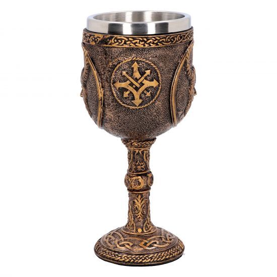 Поднимите тост за Асгард с этим фантастическим кубком "Нордический Бог" из коллекции посуды альтернативного бренда Nemesis Now. Ножка этого кубка бронзовая, покрытая сложным руническим узором, поднимается от основания, украшенного именем "Локи" и окруженного скандинавскими рунами и узорами. Кубок повторяет руны основания и украшен рельефным портретом норвежского бога Локи. Отлитый из тончайшего полистоуна и украшен тщательной ручной росписью, со съемной вставкой из нержавеющей стали для удобства очистки, этот кубок идеально подходит для питья за древних норвежских богов. Предназначен для использования по прямому назначению, а так же в декоративных целях. Мыть только вручную. Объем бокала - 200 мл. 17 см.