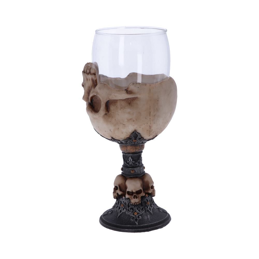 Черный бокал из подземного мира выполнен в виде черепа, который удерживает прозрачный сосуд для напитка. На ножке кубка находятся несколько черепов поменьше, богато украшенные замысловатыми узорами с бронзовыми деталями. 17 см. Этот кубок был создан талантливыми дизайнерами бренда Nemesis Now. Отлитый из тончайшего полистоуна, а затем тщательно расписанный вручную, этот кубок поставляется со съемной вставкой из нержавеющей стали для удобства очистки. Предназначен для использования по прямому назначению, а так же в декоративных целях. Мыть только вручную. Объем бокала - 200 мл.