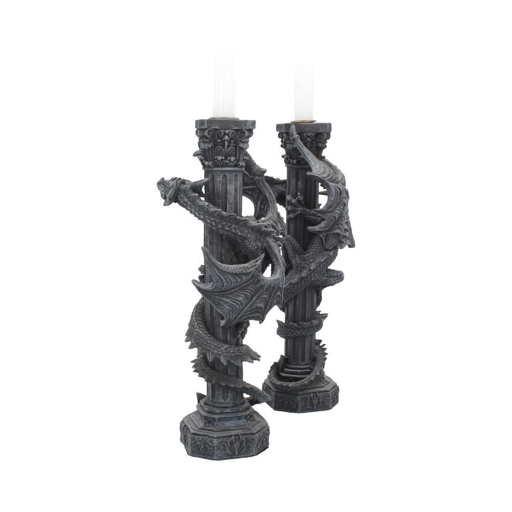 Этот прекрасный набор подсвечников от альтернативного бренда Nemeiss Now станет прекрасным дополнением любой альтернативной гостиной или столовой. Прижавшись к двум колоннам в стиле барокко, пара драконов благополучно расположилась рядом. Каждый из них крутит свое тело вокруг колонны, а их крылья широко раскинуты за спиной. Отлитый из тончайшей смолы и тщательно расписанный вручную, этот держатель идеально подходит для любого любителя мистических зверей, который ищет немного света. 28 см.