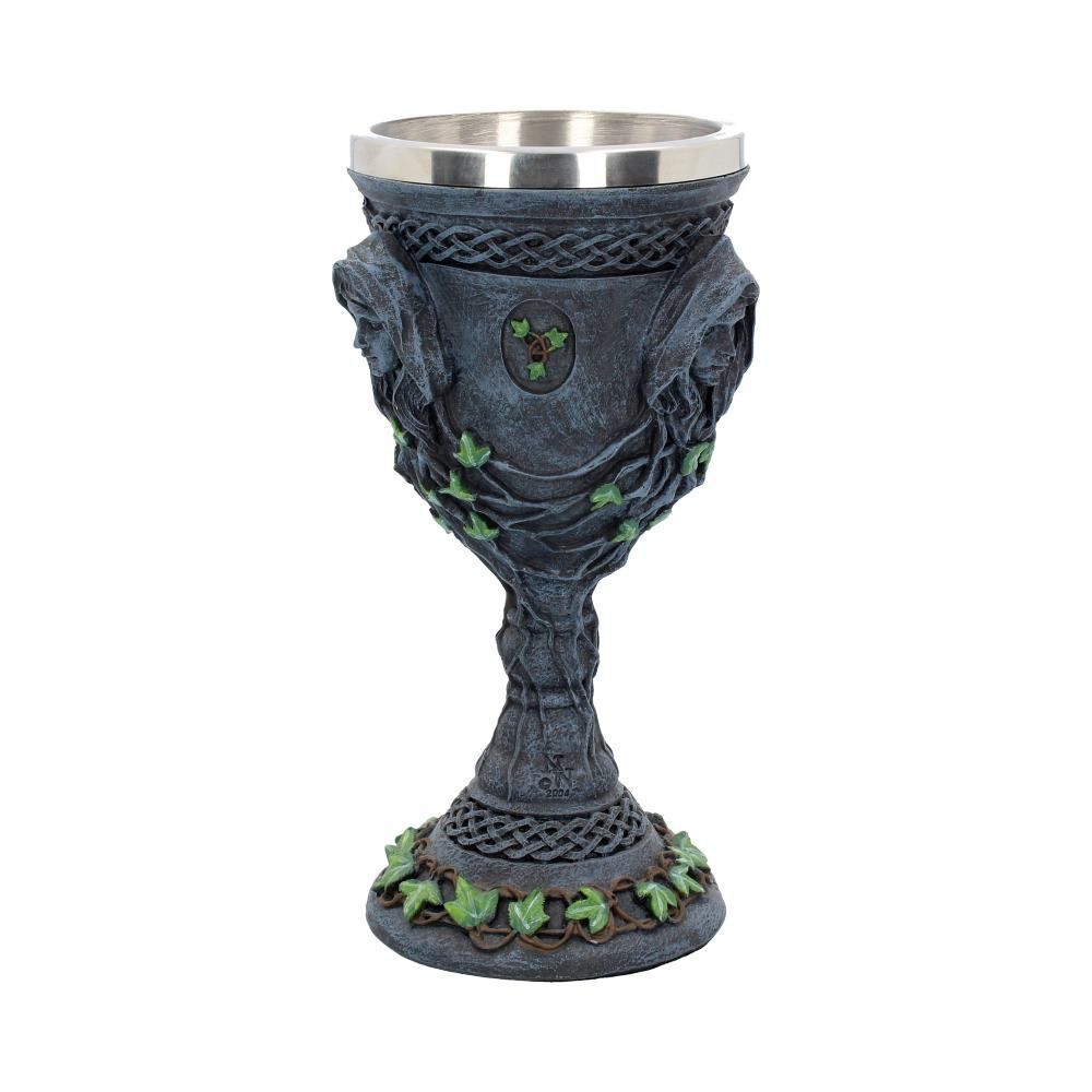Поднимите тост за Триединую богиню Луны с этим кубком "Мать, Дева и Старица" из готической коллекции сувениров Nemesis Now. Лица Девы, Матери и Старицы расположены с разных сторон кубка, соединенные замысловатой сетью корней, покрытых плющом. Эта листва переходит на ножку и даже на основание, которое также украшено кельтским узором. Отлитый из полистоуна высочайшего качества и раскрашенный вручную, этот кубок также имеет съемную вставку из нержавеющей стали, которая облегчает чистку. Предназначен для использования по прямому назначению, а так же в декоративных целях. Мыть только вручную. Объем бокала - 200 мл. 21 см.