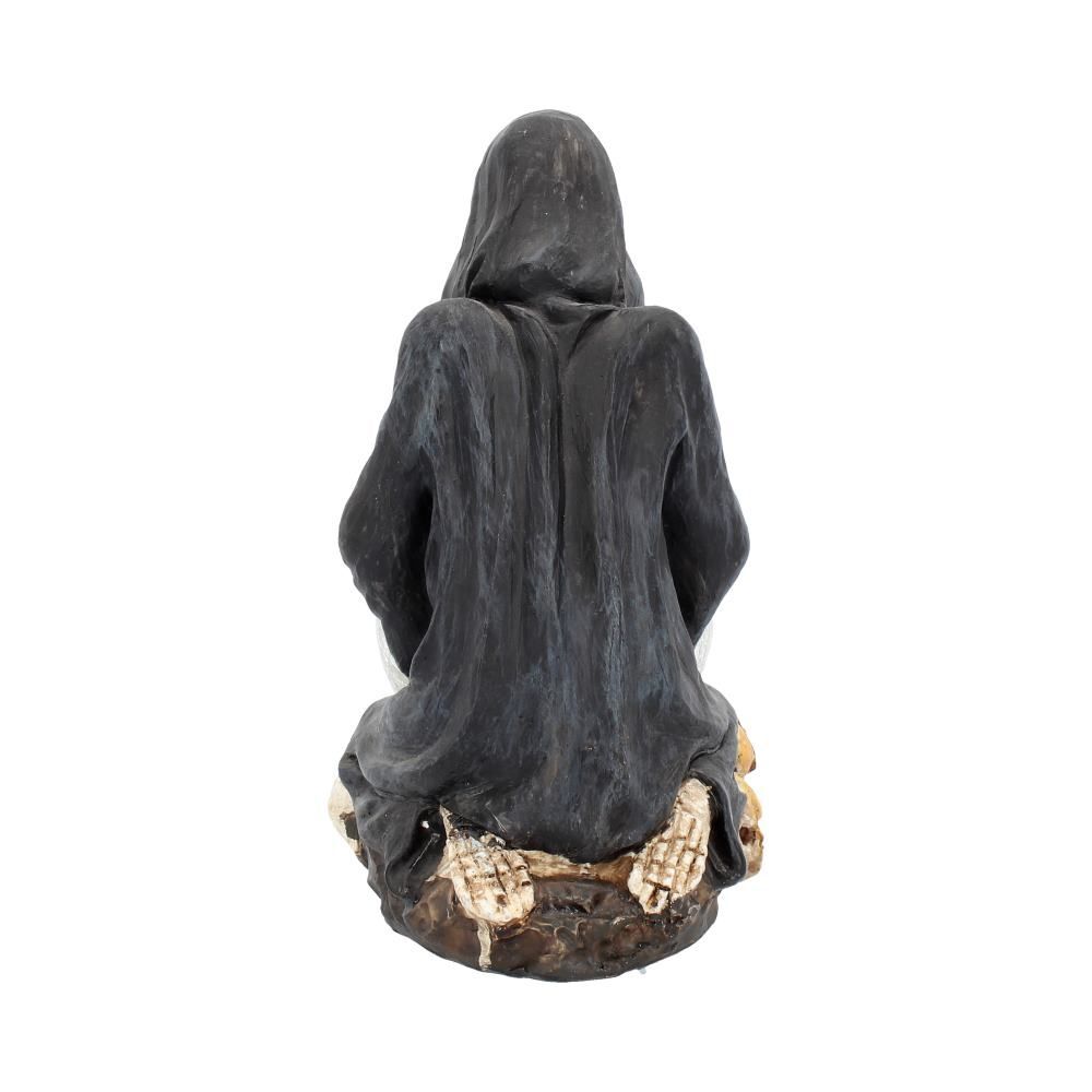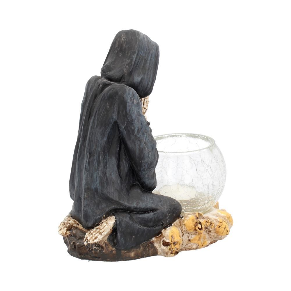 Грозный Жнец сложил руки в молитве, взывая к силе выше себя. Перед ним стоит большая надтреснутая стеклянная сфера, находящаяся на вершине груды черепов. Возможно, это место отдыха для всех душ, которые он забрал, и теперь он молится, чтобы они шли дальше в своем путешествии в загробную жизнь. Отлитый из высококачественной смолы, а затем искусно расписанный вручную, эта предмет станет желанным дополнением к любому готическому интерьеру. 19 см.