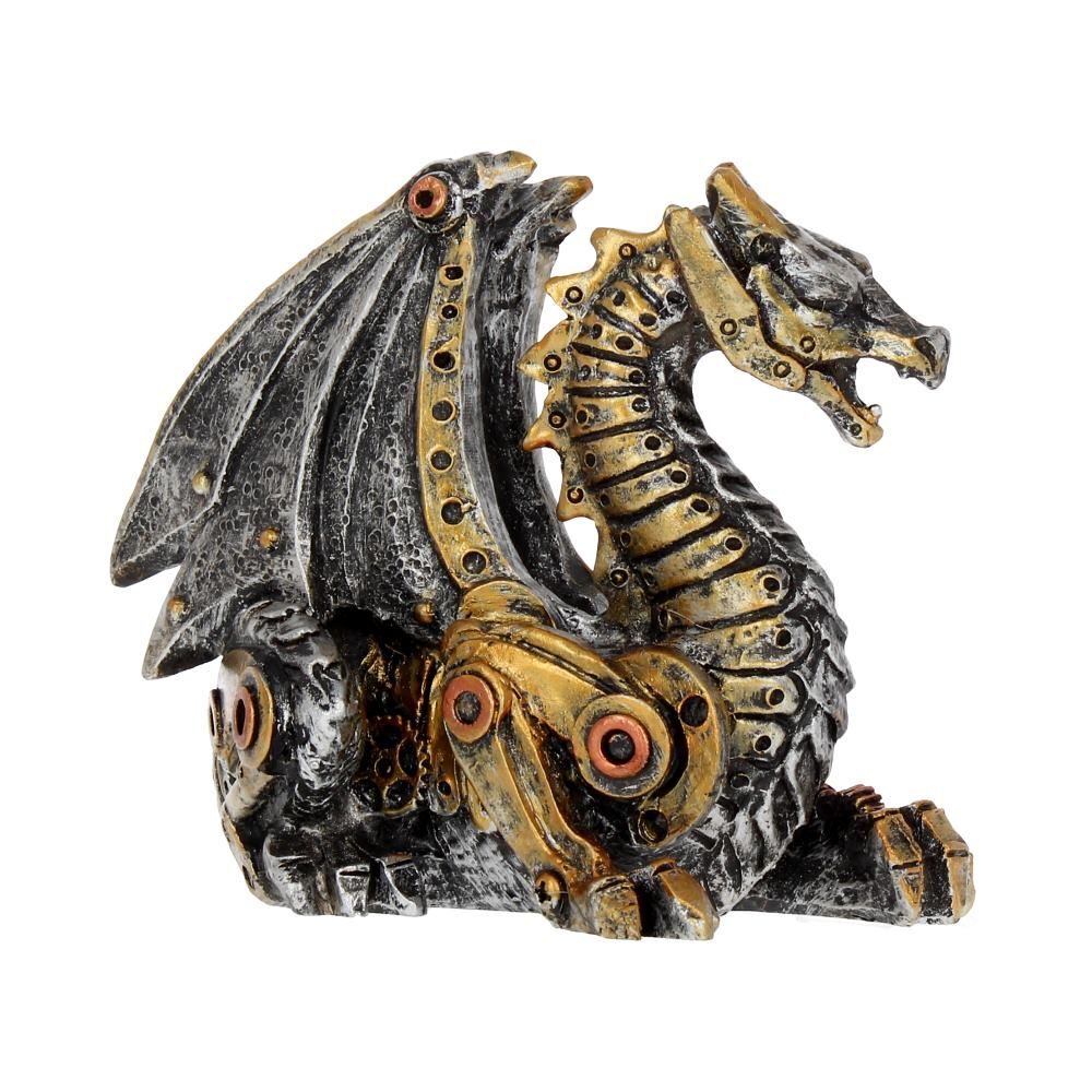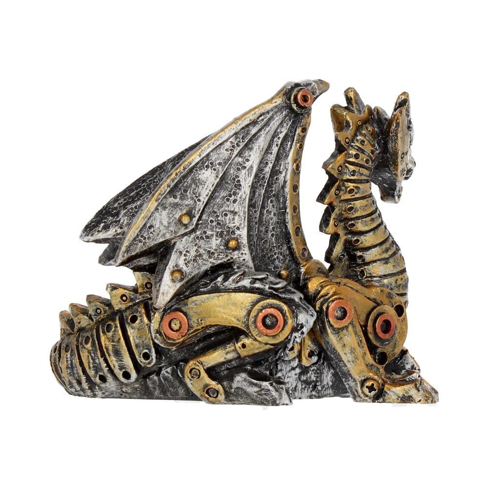 Защитите свой дом с помощью механического дракончика из коллекции сувенирной продукции альтернативного бренда Nemesis Now. Величественно сидящий, с медным хвостом, свернутым за спиной, этот детеныш дракона сделан из клепаных стальных пластин и бронзовых зубцов. Высоко подняв крылья, он задирает голову вверх, металлические челюсти оскаливаются. Отлитый из лучшей смолы и с любовью раскрашенный вручную, этот фантастический дракончик станет идеальным подарком для любого специалиста, которому нужен питомец!