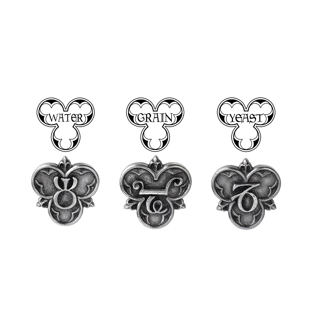 Поднимите бокал за искусство пивоварения с бокалом «Алхимия пивного бокала». Этот уникальный бокал украшен тремя оловянными медальонами, символизирующими основные ингредиенты пива: воду, зерно и дрожжи.