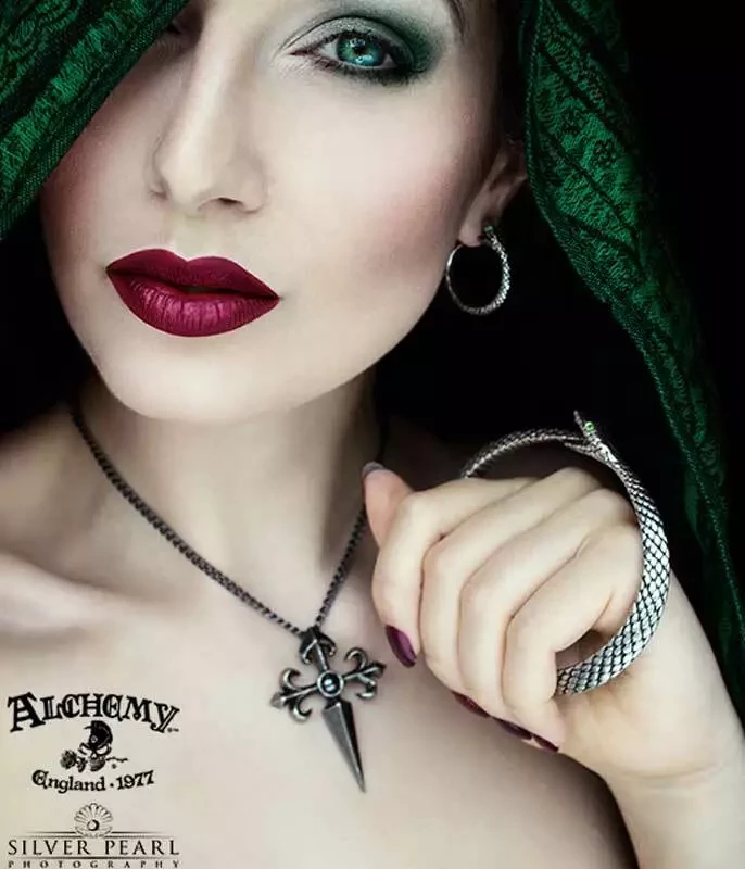 Особенностью браслета является его тематика - насекомые и рептилии, готика, животные и птицы, а также символика. В глазах змеи вставлены маленькие зеленые австрийские кристаллы, которые придают изделию особый шарм.