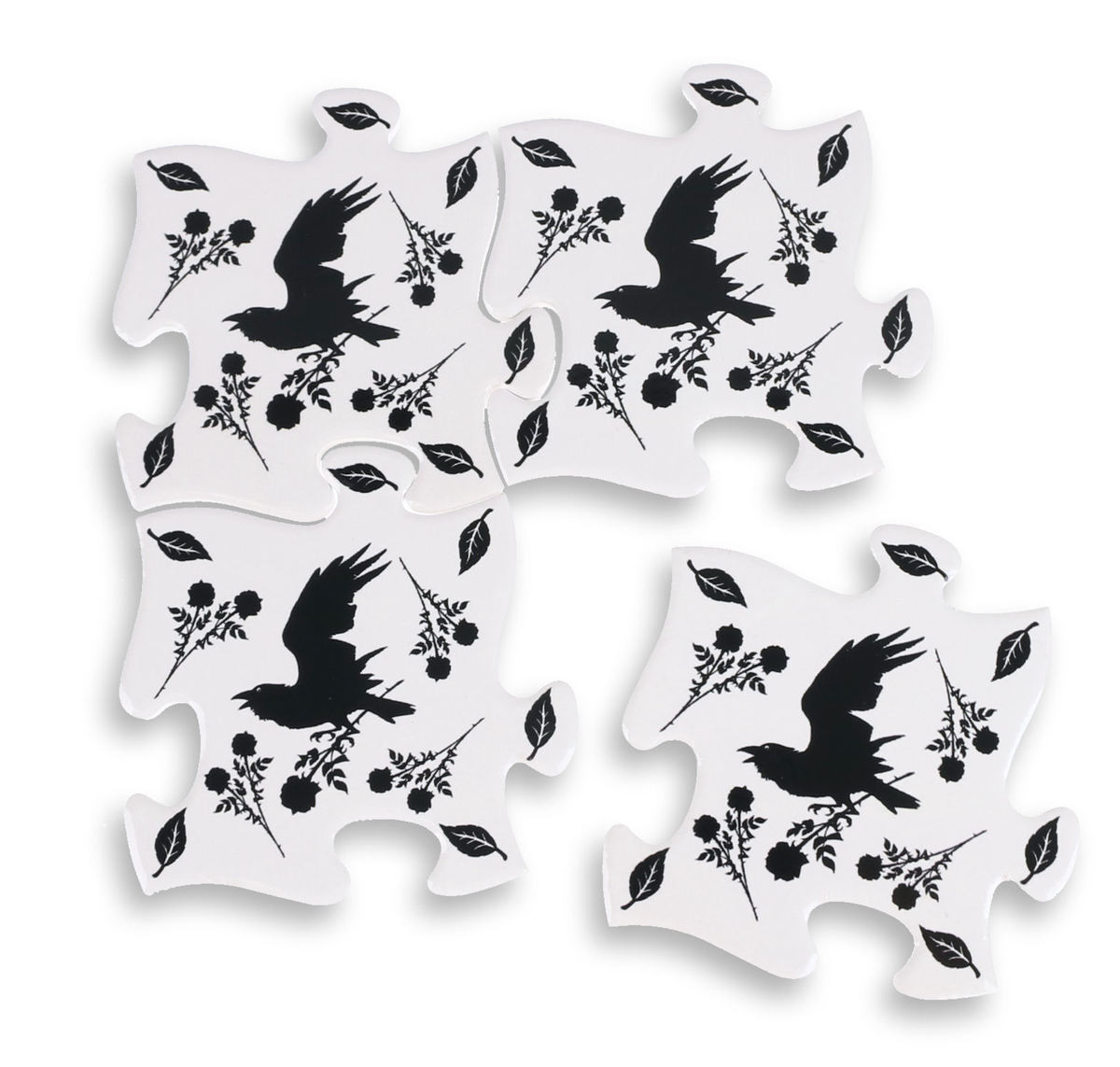 Красивый набор подставок из 4 частей, украшенный элегантным дизайном Alchemy в виде ворона и розы. Этот набор станет прекрасным дополнением к вашему дому и может быть использован по отдельности или соединен вместе, чтобы получить большую жаропрочную поверхность. Этот мрачный элегантный дизайн также представлен на подходящем подносе/разделочной доске и подставке для ложек. Этот уникальный набор разработан компанией Alchemy и является частью коллекции высококачественной керамической посуды для дома. Вес и размеры (приблизительно): 20,2х20,2х0,8 см. Вес: 363 г. Керамические подставки Jigsaw / подставки с нескользящим пробковым покрытием, украшенные оригинальными произведениями искусства Alchemy. Термостойкие и устойчивые к царапинам.