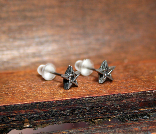 Миниатюрные пентаграммы для магической и духовной преданности. Неприметные украшения для защиты и придания силы. Пара крошечных сережек из английского пьютера в форме пентаграммы, крепление - гвоздики из хирургической стали и силиконовая заглушка. Вес и размеры: H: 7 мм (0,28 дюйма) W: 7 мм (0,28 дюйма) D: 13 мм (0,51 дюйма) Вес 1 г (0,04 унции)