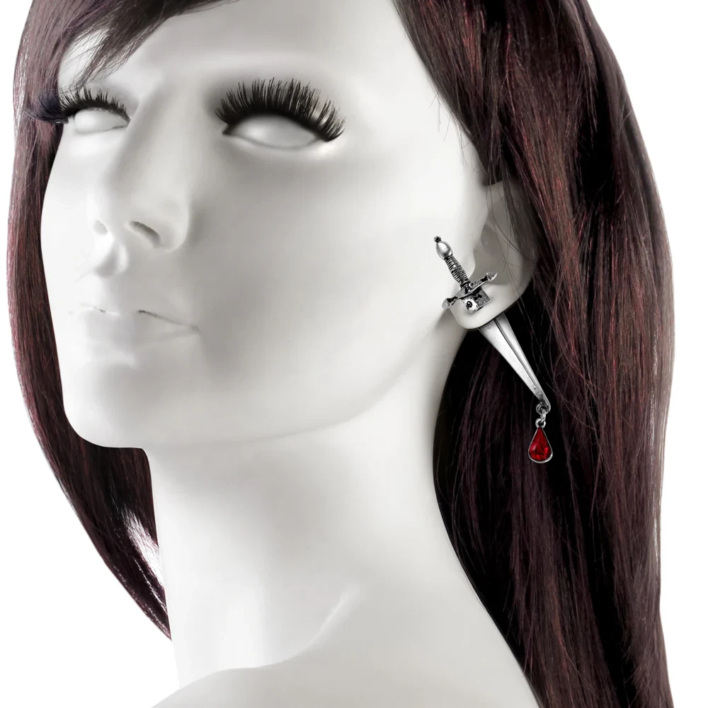 Свежий символ 16-го века - Чезаре Борджиа Флорентийского для решения всех политических проблем. Захватывающий отрезок ренессанса, который является настоящим аргументом для любого разговора. Серьга из английского пьютера в форме кинжала с капелькой крови из кристалла Swarovski, крепление - гвоздик из хирургической стали и силиконовая заглушка, серьга с эффектом пирсинга. Вес и размеры: H: 70 мм (2,76 дюйма) W: 22 мм (0,87 дюйма) D: 6 мм (0,24 дюйма) Вес 4 г (0,14 унции)