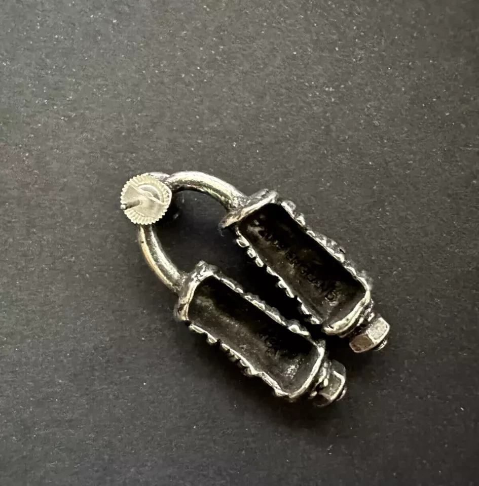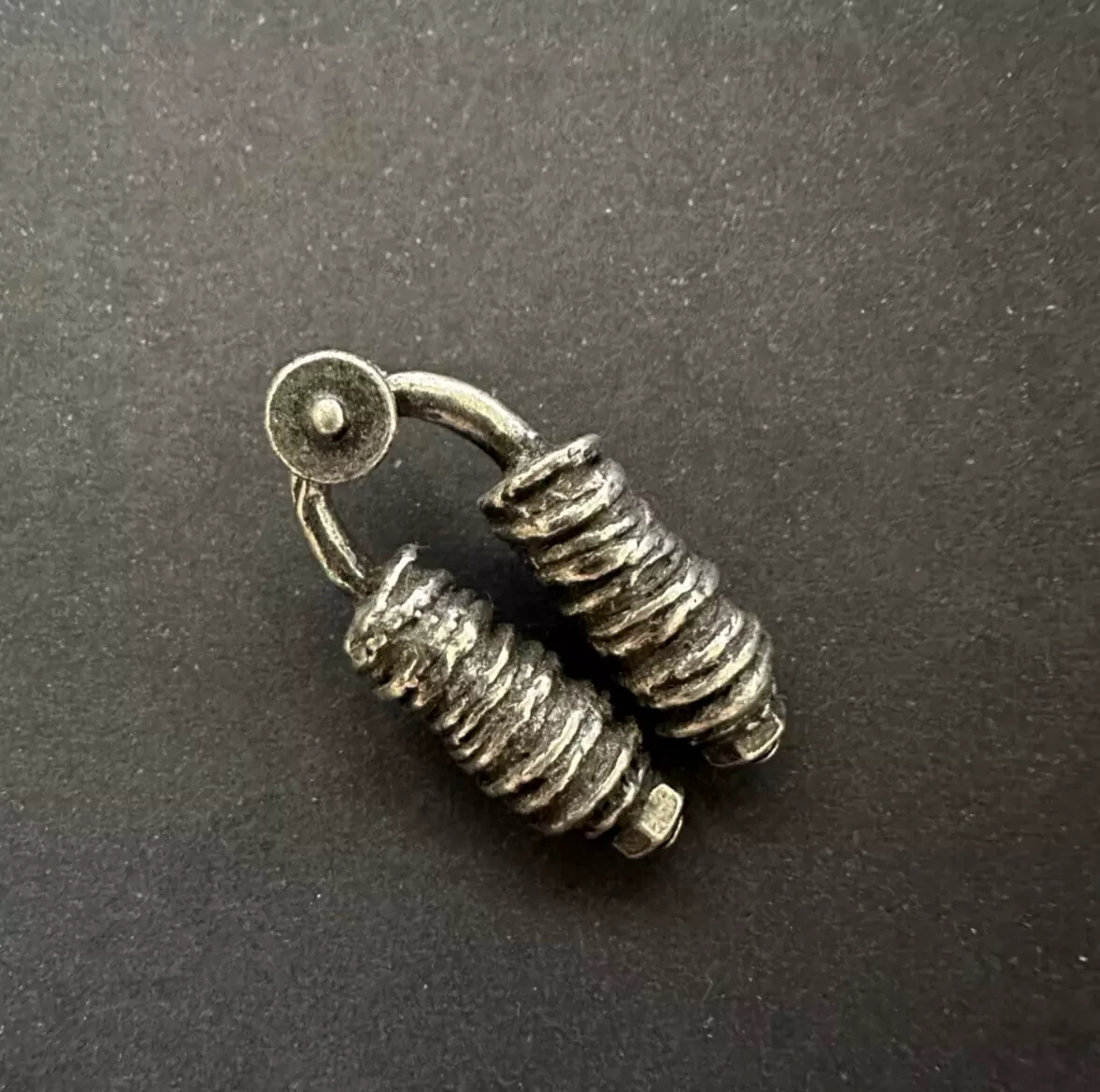 Серьга "Электромагнит" выполнена в серебристом цвете и имеет моноформу. Тематика изделия - готика, что придает ему особый шарм и загадочность.