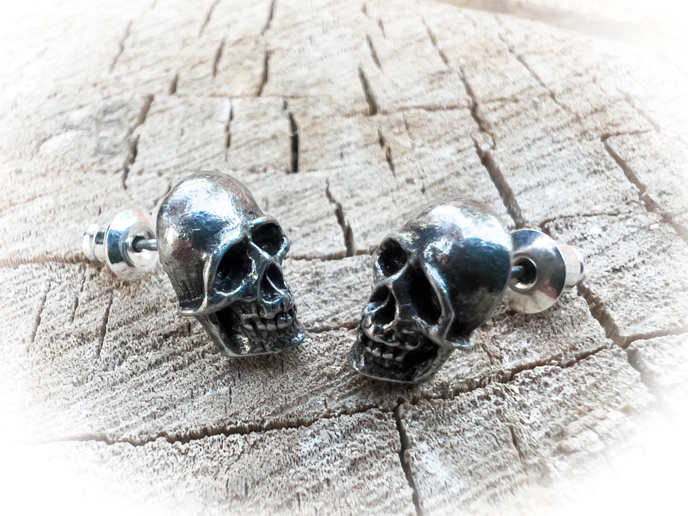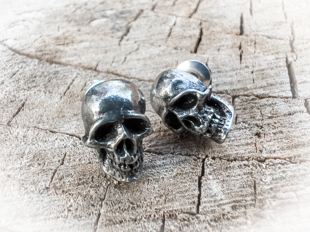Цепочка мрачных и отрезвляющих мыслей в мозге, устремленная глубоко в прошлое о давно минувшем смертном существовании. Пара сережек черепов среднего размера, с хирургическими стальными гвоздиками. Крепление - гвоздики из хирургической стали и силиконовая заглушка. Вес и размеры: H: 11 мм (0,43 дюйма) W: 7 мм (0,28 дюйма) D: 14 мм (0,55 дюйма) Вес 6 г (0,21 унц.)