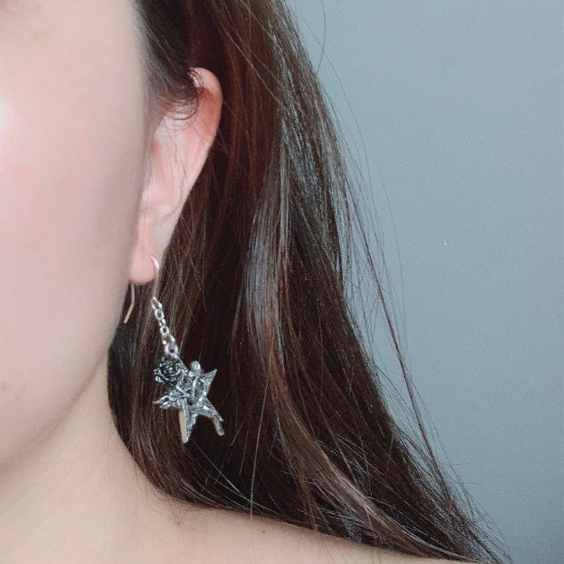 Дизайн сережек включает в себя пентаграмму, которая является символом пятого элемента, духа и «дыхания жизни». Она страстно переплетена с черной лепестковой розой, символизирующей верную любовь.