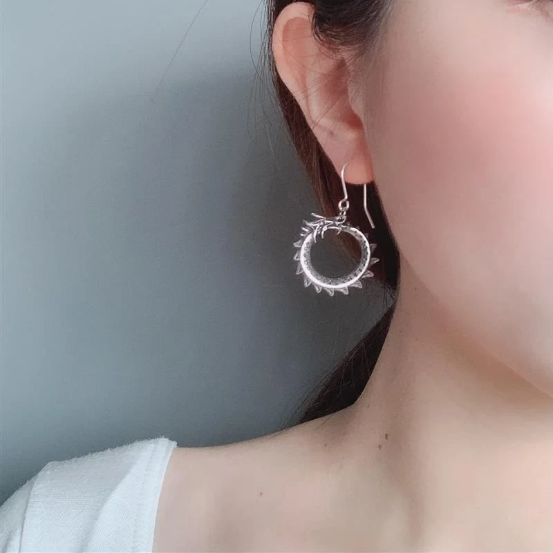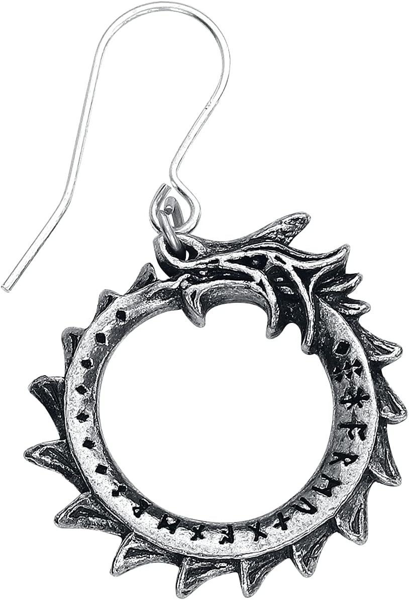 Серьги-подвески Йормунганд от Alchemy Gothic – это сдержанные талисманы-уроборосы, эмблемы целостности, сформированные из легендарной норвежской змеи Мидгард.