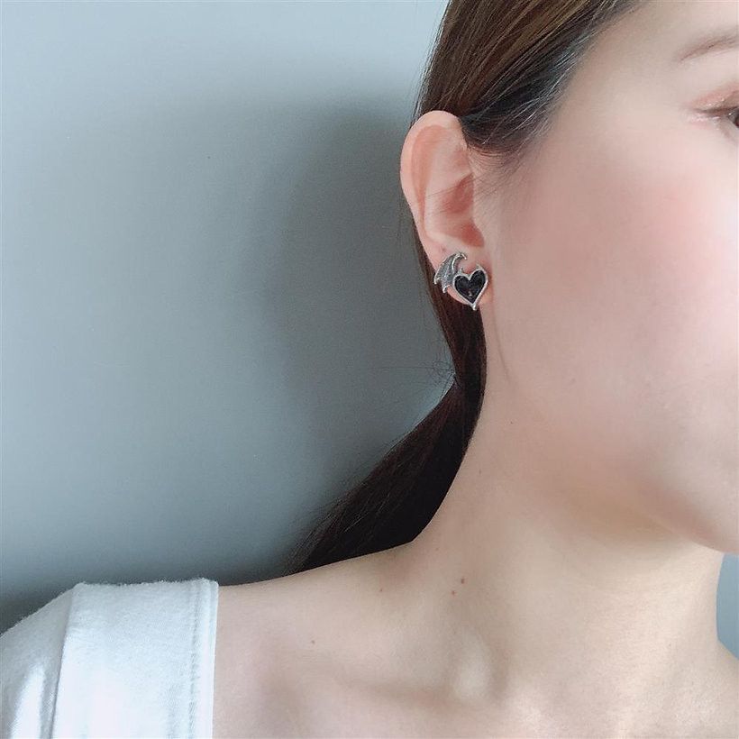 Серьги выполнены в форме черного сердца с крыльями летучей мыши, что придает им магический и соблазнительный вид. Это украшение не только стильно, но и обладает глубоким символическим значением.
