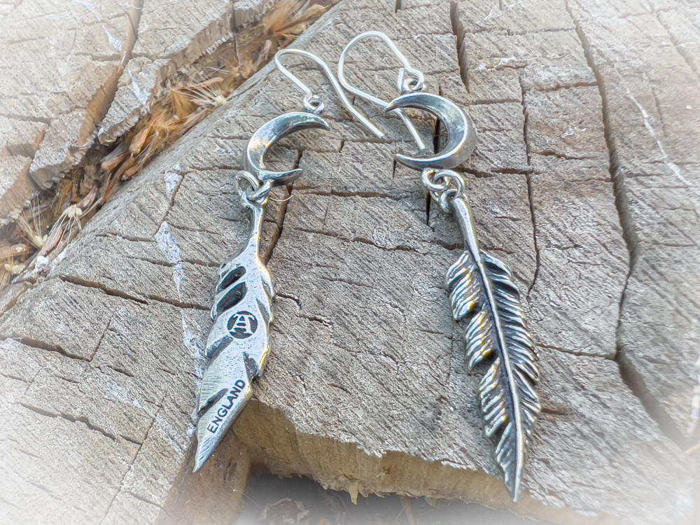 ЯЗЫЧЕСКИЙ ЛОВЕЦ СНОВ. Дух ворона и великий защитник, сбрасывающий лишь одно перо, чтобы парить под невесомой луной. Отгоняет зло, которое шепчет на пороге полуночи, заманивая в паутину снов. Потрясающие серьги для ловли дневных снов и ночных кошмаров! Пара серег в стиле «Ловец снов» с полумесяцем и перьями. Вес и размеры (приблизительно): H: 58 мм W: 12 мм D: 4 мм Вес: 6,8 г. Упаковано в фирменный пакет Alchemy, включая гарантию Alchemy и инструкции по уходу. Разработаны и изготовлены вручную в Англии из тонкого английского пьютера с дужками из хирургической стали.