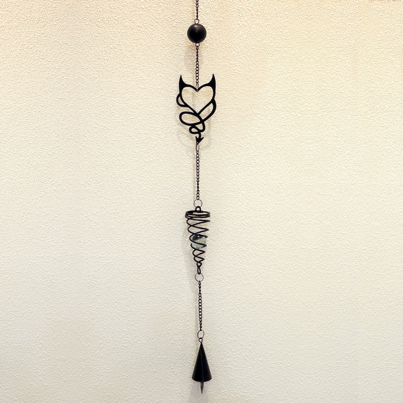Подвесное украшение «Сердце дьявола» выполнено в элегантном черном цвете, что делает его универсальным и подходящим для использования как в помещении, так и на открытом воздухе. Оно станет ярким акцентом в любом интерьере и поможет создать атмосферу загадочности и игривости.