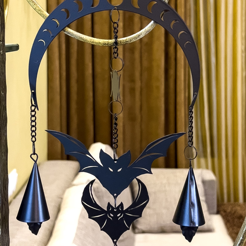 Изображение летучей мыши с индикатором фаз луны и нежный звон колокольчиков создают уникальную атмосферу, которая станет идеальным подарком для всех любителей ночной тематики.