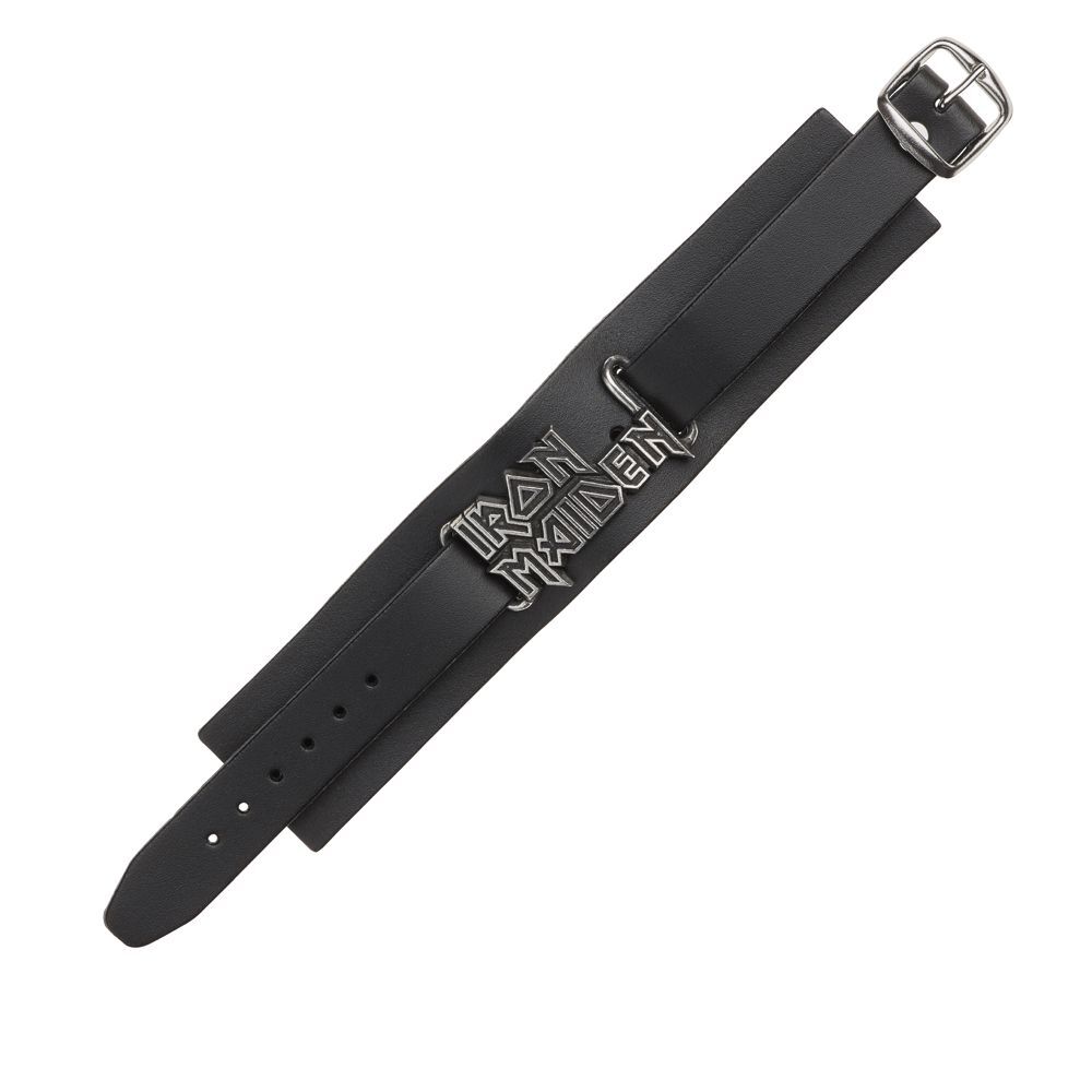 Браслет из черной кожи шириной 1 ½ дюйма (38 мм) с литой старинной английской оловянной соединительной пластиной с логотипом Iron Maiden; регулируемая длина, застежка с пряжкой. Изделия в индивидуальной фирменной упаковке, включающей гарантию, фирменную бирку "Сваровски" и инструкцию по уходу. Разработаны и изготовлены вручную в Англии с использованием *Swarovski элементов и английского пьютера. Цвет кристаллов зависит от наличия и может отличаться от показанного изображения.