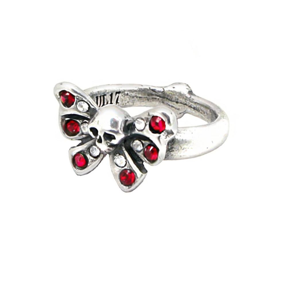 Оригинальное украшение из городской коллекции UL17 Alchemy, выполненное из высококачественного английского олова с добавлением мелких красных и белых кристаллов Swarovski. Дизайн подвески включает в себя симпатичный бантик и небольшой череп.