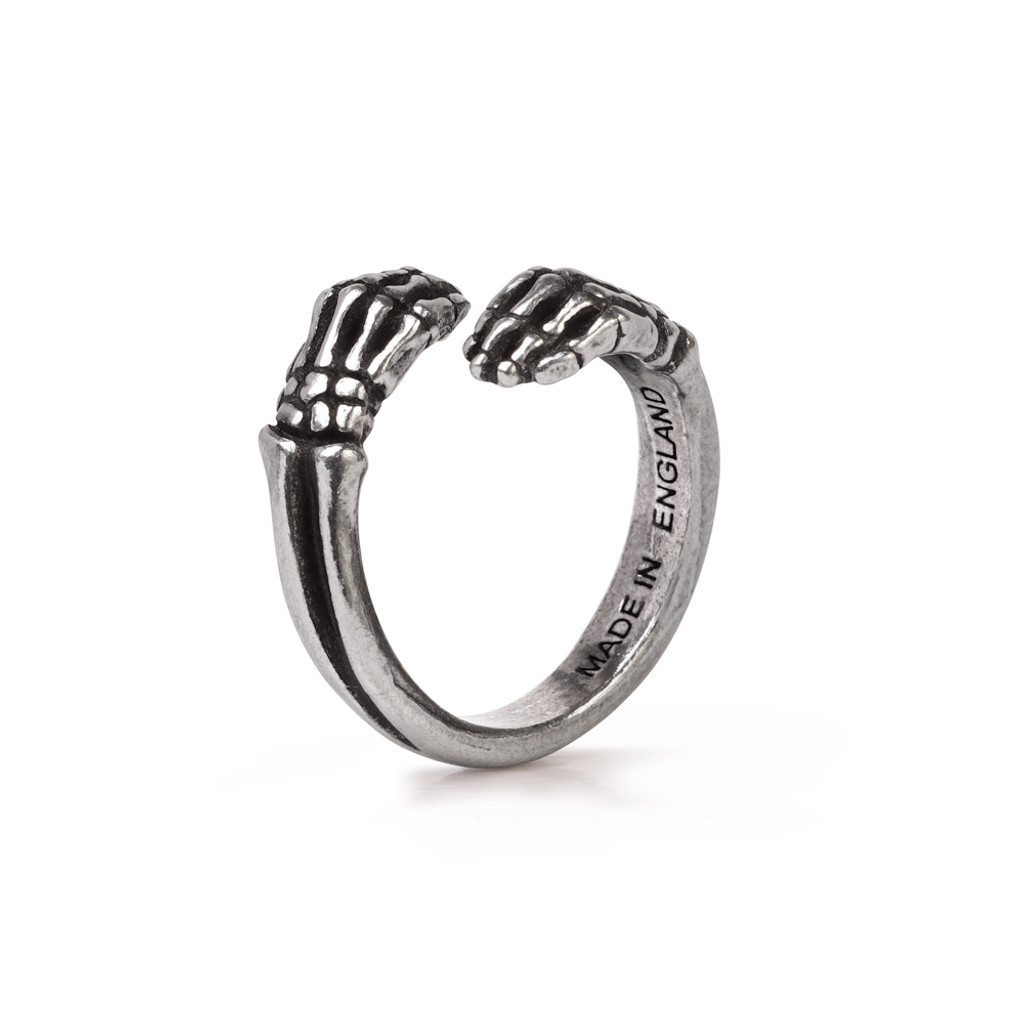 Нежные воспоминания о некогда теплой близости. Приблизительные размеры Высота: 1,06 Ширина: 1,1 Глубина: 0,47. Кольцо, в виде обнимающих палец костяных рук, изготовлено вручную из английского пьютера. Позволяет немного менять размер.