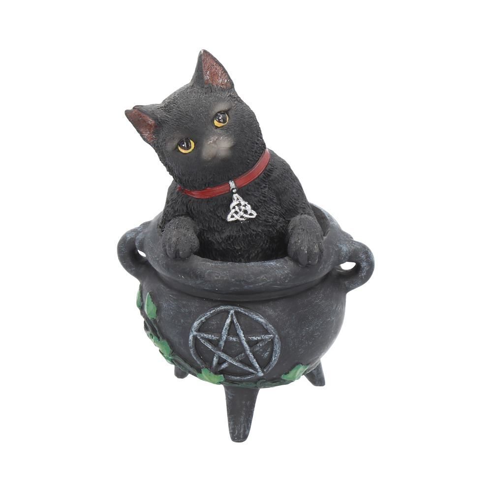 Созданная готическим брендом Nemesis Now, эта очаровательная кошка отлита из высококачественного полистоуна, а затем с любовью раскрашена вручную. Эта черная кошка с довольным видом выглядывает из котла, а на ее красном ошейнике висит серебряный медальон трикветра. Милый компаньон для ведьмы. 12 см.