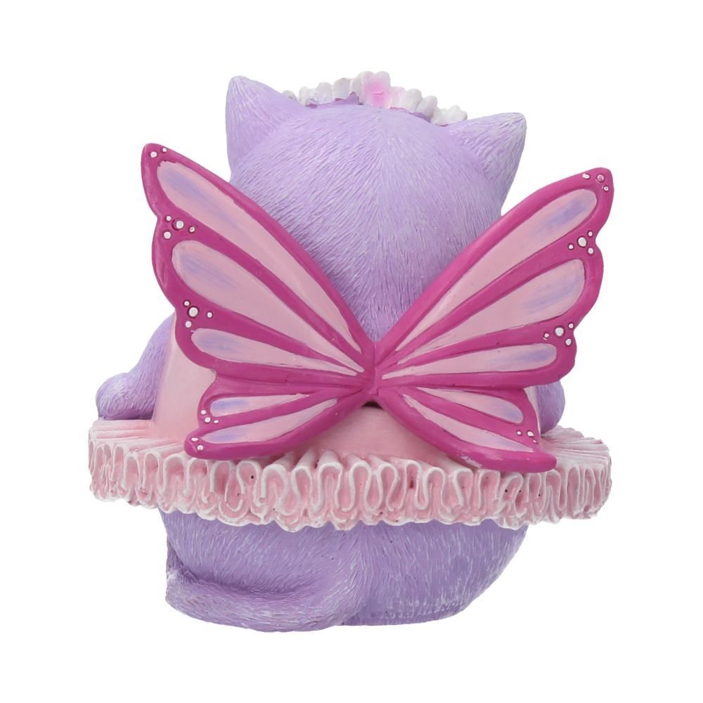 Очаровательная фигурки котика, разработаная Nemesis Now как часть коллекции Snapcats, отлита из высококачественного полистоуна и раскрашена вручную. Волшебная кошка-фея имеет стильную пару крыльев цвета фуксии, эта причудливая лавандовая кошка носит в волосах 4 из белых цветов. Ее юбочка бледно-розового цвета вокруг тела содержит надпись "Feline Fairy Magic". В правой лапе она держит волшебную палочку и смотрит на вас широко раскрытыми глазами. 8 см.
