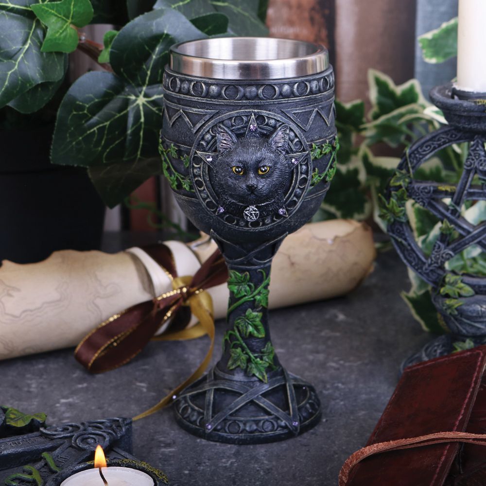 Готический кубок, созданный неукротимым воображением Лизы Паркер, доступен исключительно через Nemesis Now. Кошачья голова смотрит прямо на вас, в желтых глазах отражается заколдованная душа. За головой видны лучи пентаграммы, а всю чашу обвивает плющ. Ножка кубка стоит на пентаграмме, по ней вьется плющ. Кубок, отлитый из высококачественной смолы и искусно раскрашенный вручную, идеален для тех, кто стремится к магии.