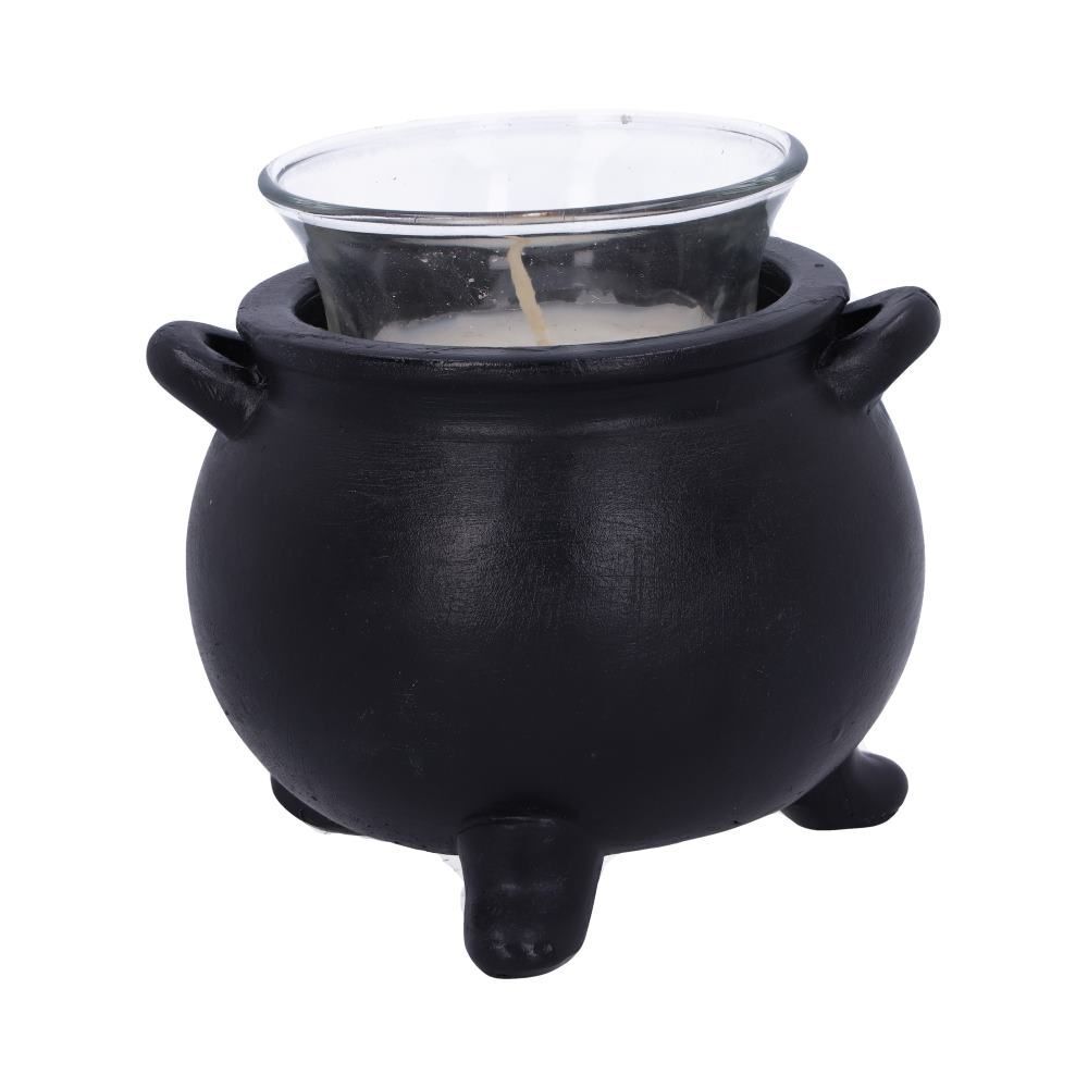 Этот маленький подсвечник в виде котла от мастеров альтернативного искусства Nemesis Now - мечта любого любителя оккультизма. Этот котелок, в который помещается небольшой стеклянный подсвечник, имеет матово-черную отделку и золотой всевидящий глаз в центре. Котелок украшен надписями и цифрами из спиритической доски, по бокам от глаза расположены слова Любовь, судьба, предназначение и Видит все, знает все, расскажет все. Отлитый из тончайшей смолы, этот предмет станет прекрасным дополнением к любому темному алтарю.