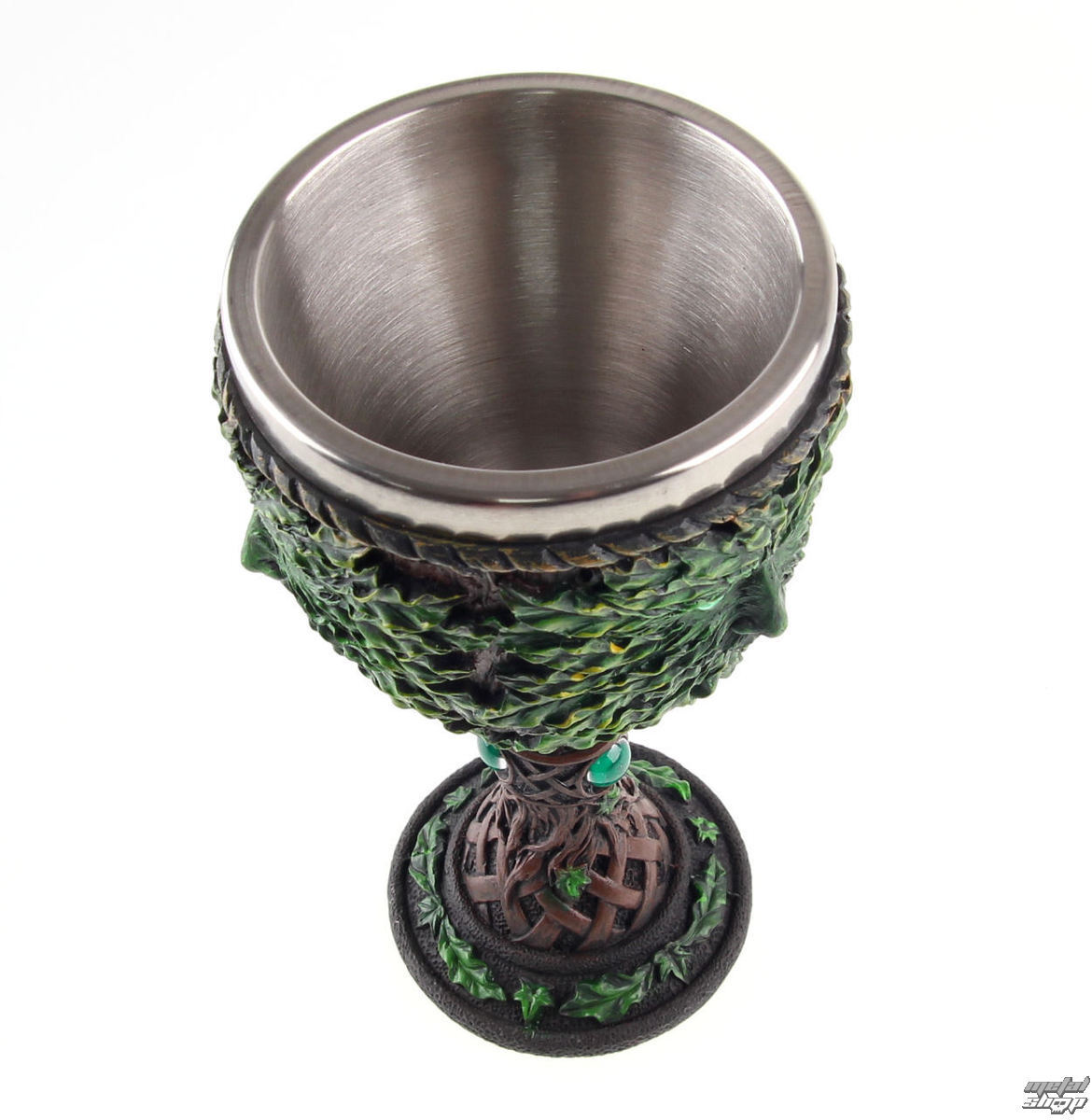 Этот кубок был создан талантливыми дизайнерами бренда Nemesis Now. Отлитый из тончайшего полистоуна, а затем тщательно расписанный вручную, этот кубок поставляется со съемной вставкой из нержавеющей стали для удобства очистки. Предназначен для использования по прямому назначению, а так же в декоративных целях. Мыть только вручную. Объем бокала - 200 мл. Поднимите тост с этой уникальной чашей с изображением древесного духа. Лицо дикого леса, грозного зеленого человека, украшает этот кубок. Глаза устремлены на вас, а древесные корни окружают лицо. Листья имитируют усы и бороду духа. Сеть корней образует основание чаши и спускается по ножке к основанию.