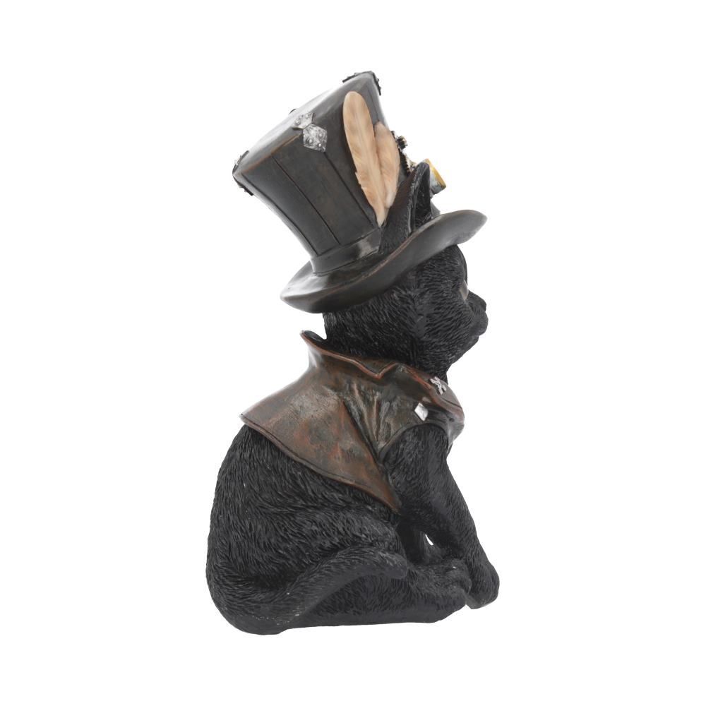 Очаровательный кот Cogsmith's Cat - идеальный компаньон для любого изобретателя - из коллекции подарочных изделий фэнтезийного бренда Nemesis Now. Сидящий на задних лапах, этот черный кот носит на голове кожаную шляпу, украшенную шестеренками, часовыми механизмами и перьями, а сквозь ободок выглядывают его уши. На котике надет коричневый кожаный жилет, а на шее - ошейник. Кот смотрит на вас с необыкновенным умом. Отлитый из высококачественного полистоуна и тщательно раскрашенный вручную, этот котик станет отличным подарком для любого, кто любит стимпанк. 18 см.