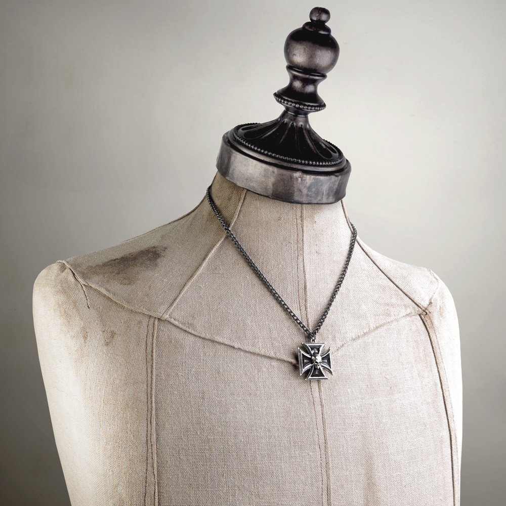 Подвеска Черный крест украшена черепом. В награду за коварные поступки. Кулон "Железный крест" с черепом в центре и черной эмалью. Вес и размеры (приблизительно): H: 34 мм (1,34 дюйма) W: 35 мм (1,38 дюйма) D: 7 мм (0,28 дюйма) Вес 33 г (1,16 унции)