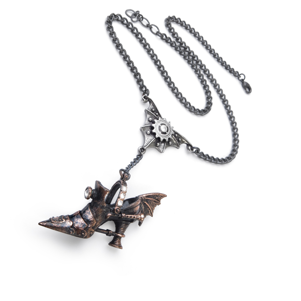 Необыкновенная двухцветная подвеска в виде туфельки стиля стимпанк, с ремешком и фарой из кристаллов Сваровски. Идеи и дизайн изделия разработаны художниками бренда The Alchemy Gothic и защищены авторским правом.
