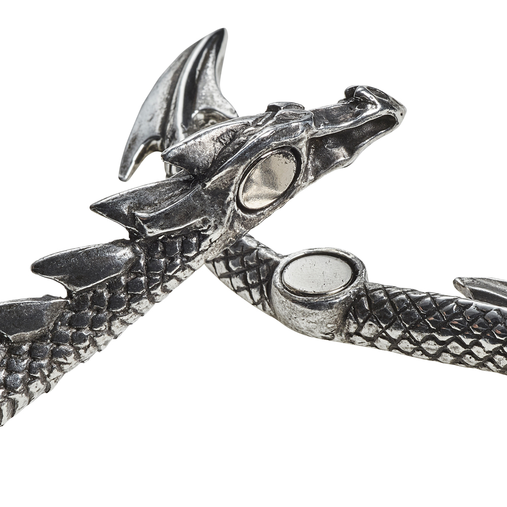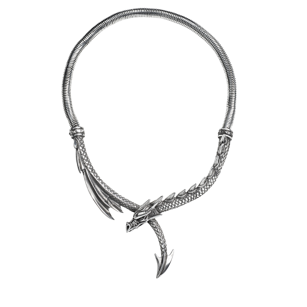 Подвеска Дракон. Подвеска на магнитной застежке, в форме дракона. Извивающийся, уникальный дракон, охотно доверившийся изменчивому образу жизни. Большое цельное, старинное ожерелье в форме дракона,на сплошной змееподобной цепи. Всего 19 ½" (49 см); нерегулируемое. Вес и размеры (приблизительно): H: 145 мм (5,71 дюйма) W: 96 мм (3,78 дюйма) D: 18 мм (0,71 дюйма) Вес: 159 г (5,61 унции)