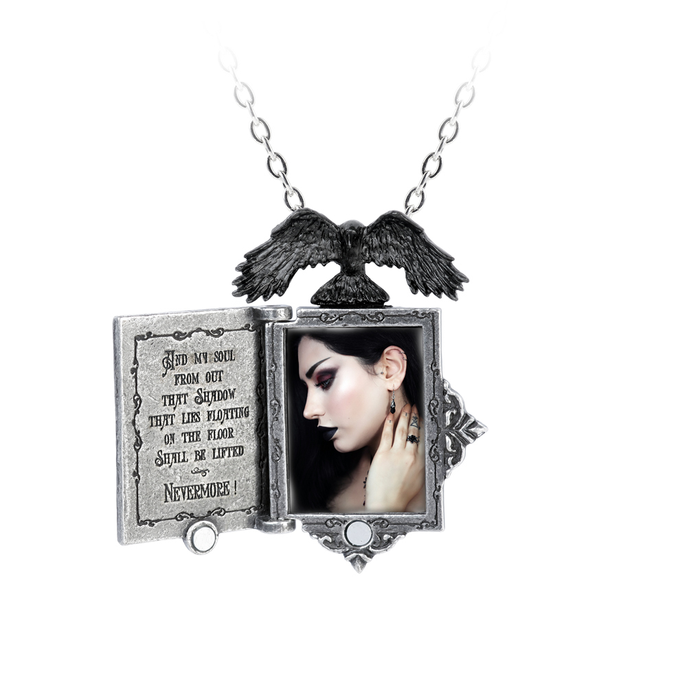 Медальон в форме обложки первого издания книги Эдгара Аллана По "Ворон", дополнена черным вороном. Обратите вашу любовь к поэзии "По". Медальон из пьютера, имитирующий оригинальную обложку книги "Ворон По", с декоративным обрамлением и черным вороном. Книга открывается, а с внутренней стороны выгравированы отрывки из стихотворения, рамка вмещаем фотографию размером 22 х 30 мм и закрывается с помощью магнита. На цепочке 21" (53 см). Ожерелье на цепочке 20" (50 см). Вес и размеры (приблизительно): H: 60 мм (2,36 дюйма) W: 44 мм (1,73 дюйма) D: 10 мм (0,39 дюйма) Вес: 54 г (1,90 унции)