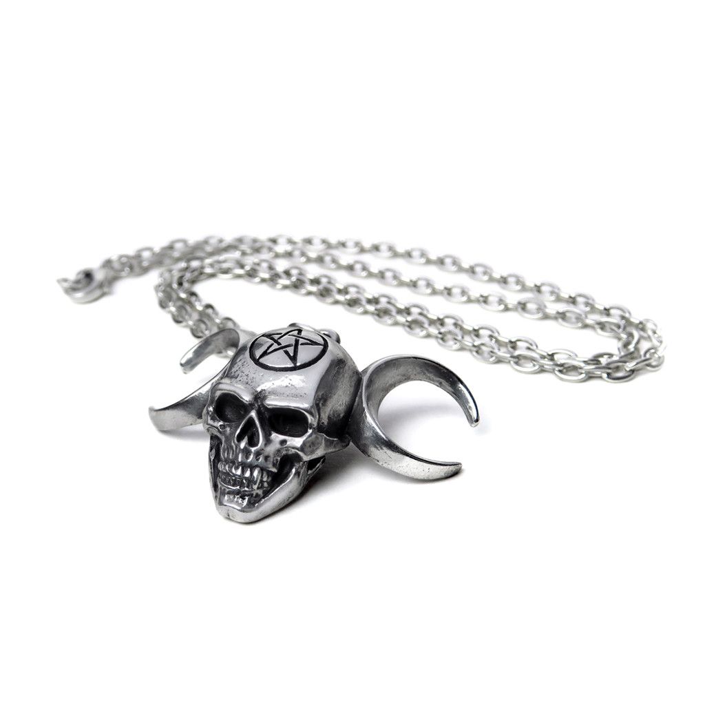 Лунная Богиня Триединства с непоколебимой решимостью призывает к объединенным силам созидания, чтобы противостоять грубому, недальновидному, трагическому материализму человечества. Подвеска из английского пьютера на цепи длиной 21 дюйм (54 см) с выгравированной пентаграммой на черепе и полумесяцем по обеим сторонам. (Пожалуйста, обратите внимание, что размеры украшений на шею указаны без учета креплений). Крепление и упаковка: подвеска на разъемной цепочке с застежкой (не содержит никеля). Упаковано в фирменный пакет Alchemy, включая гарантию Alchemy и инструкции по уходу. Материалы и происхождение: разработано и изготовлено вручную в Англии с использованием тонкого английского пьютера высшего качества.