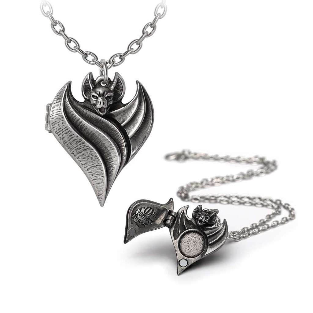 МЕДАЛЬОН «ТЕМНОЕ СЕРДЦЕ» (P949). «Моя темная любовь»; тайное свидетельство об опасном и вероломном поклоннике - для хранения внутри подобия вашего ревенанта. Прекрасная на ощупь вещь, которая добавит нотку тьмы любому наряду! Медальон в виде летучей мыши, образующей форму сердца. Аккуратно приподнимите крыло, чтобы открыть тайное место для близкого человека. За крылом открывается надпись «Mon Sombre» Amour. - Моя темная любовь. Размер (приблизительно): На цепочке длиной 21 дюйм (53 см). Вес и размеры (приблизительно): H: 40 мм W: 32 мм D: 10 мм Вес: 35 г. Упаковано в фирменный пакет Alchemy, включая гарантию Alchemy и инструкции по уходу. Разработаны и изготовлены вручную в Англии из тонкого английского пьютера.