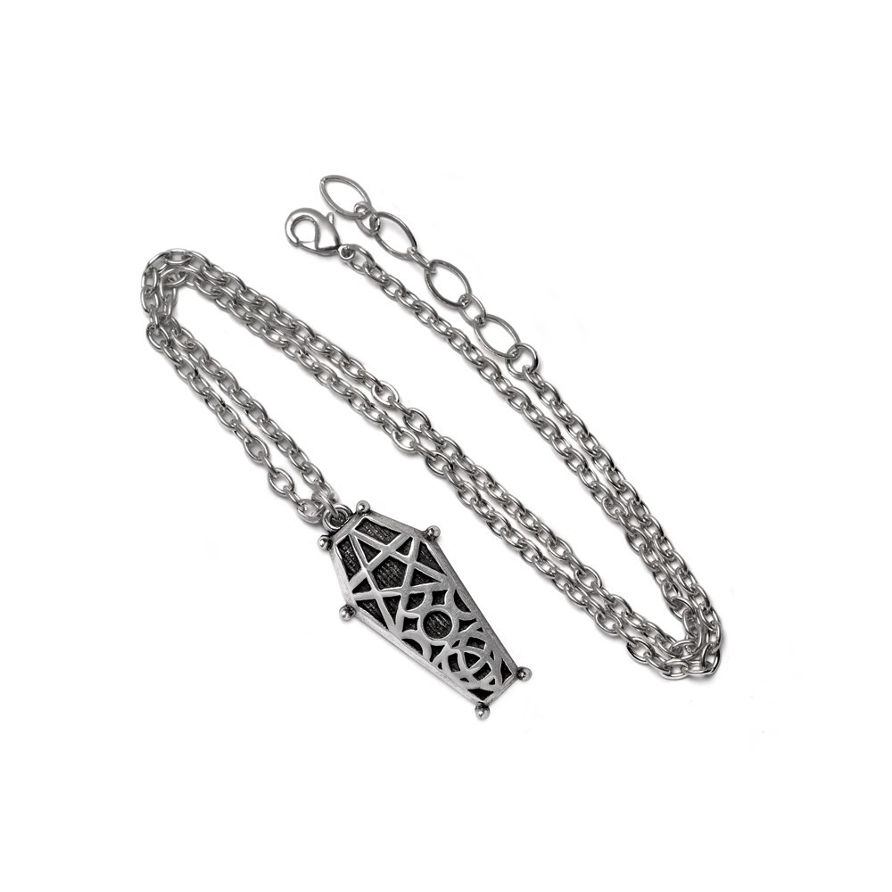 Войдите в мир, где тьма сочетается с элегантностью, с нашей потрясающей подвеской «Шестигранный гроб». Этот пленительный кулон создан для тех, кто осмеливается выразить свою индивидуальность. Изготовленный из старинного олова, мерцающий блеск красиво подчеркивает замысловатые детали, делая этот стилизованный гроб обязательным аксессуаром для мистических душ и любителей макабра.