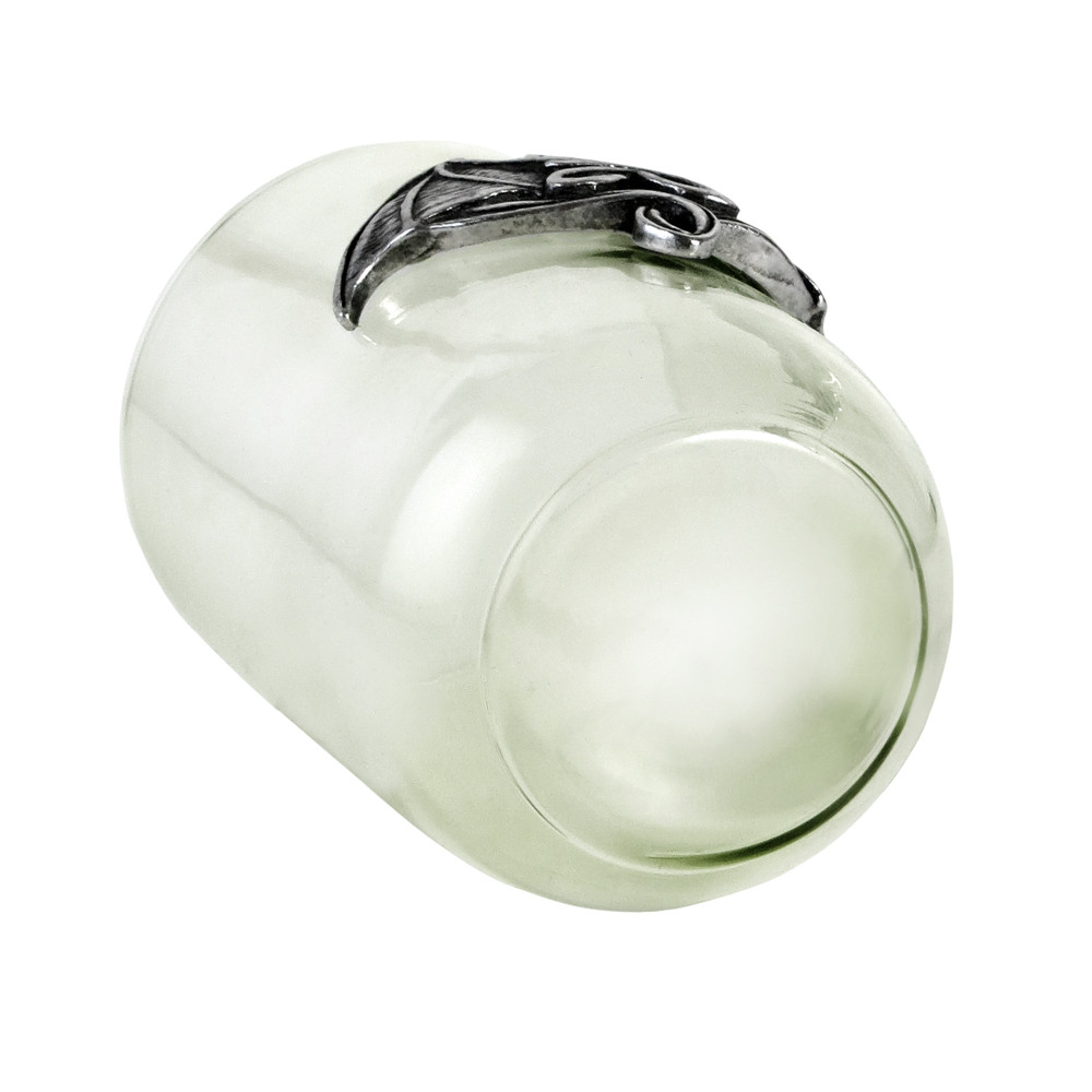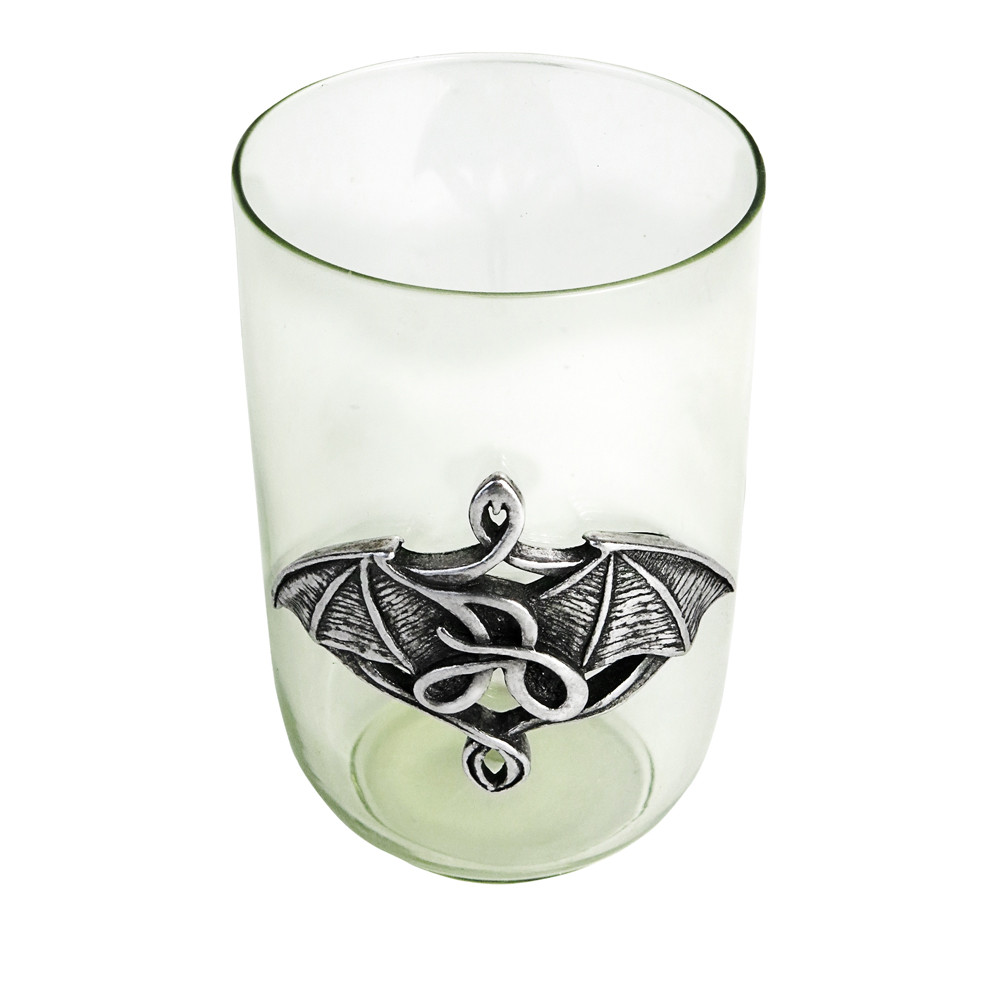 Темно-зеленый цвет; час призраков и цвет эликсира в эпикурейской Европе XIX века. Художники, поэты, светские дамы и вампиры — все они сговаривались и наслаждались этим опьяняющим нектаром. «А» означает абсент! Рюмка высотой 70 мм, темно-зеленого цвета, ручной работы, украшена оловянными крыльями летучей мыши в стиле модерн и мотивом «А» в качестве эмблемы.