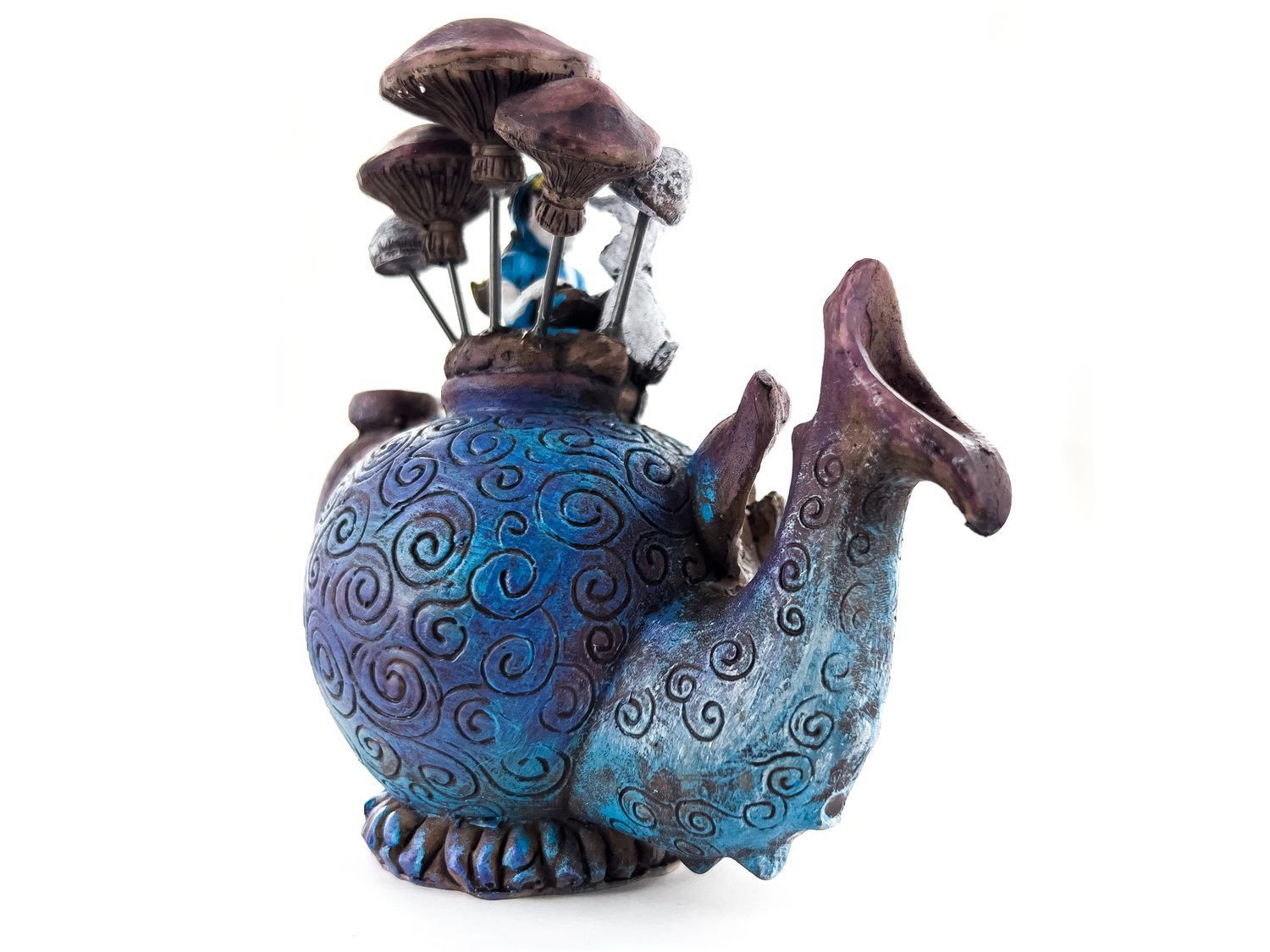Статуэтка в виде чайника имеет форму симпатичного кота с детализированными чертами и хвостом, который служит в качестве ручкой. Он выполнен из керамики высокого качества, что обеспечивает прочность и долговечность изделия.