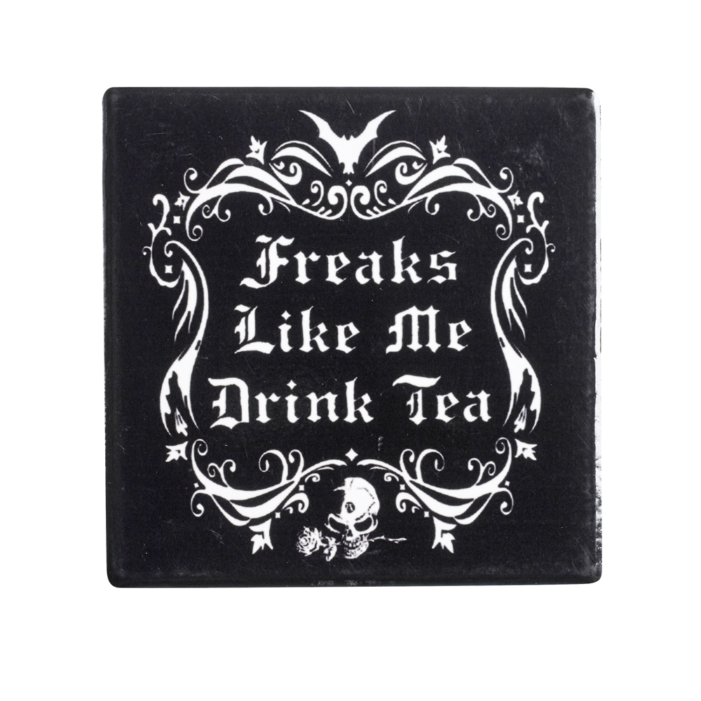 Эта подставка "Такие фрики, как я, пьют чай" идеально подходит для всех, любящих чай. Почему бы не объединить ее с подходящей подставкой под чайник с тем же лозунгом! Существует 17 уникальных подставок, разработанных Alchemy, почему бы не собрать их все! Эта подставка разработана компанией Alchemy и является частью коллекции высококачественной керамической домашней утвари. Вес и размеры (приблизительно): 9,3х9,3х0,8 см. Вес: 102 г. Керамическая подставка с нескользящей пробковой подложкой, украшенная оригинальной иллюстрацией Alchemy. Термостойкая и устойчивая к царапинам.