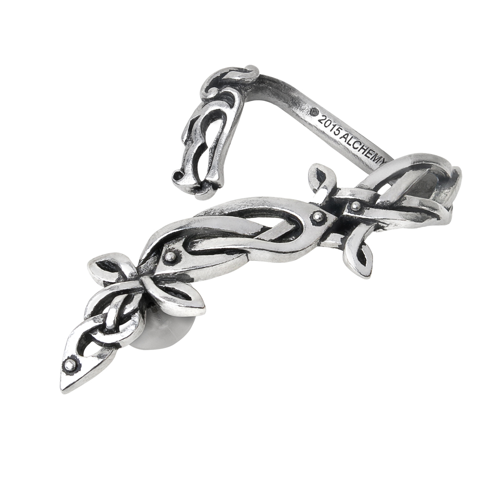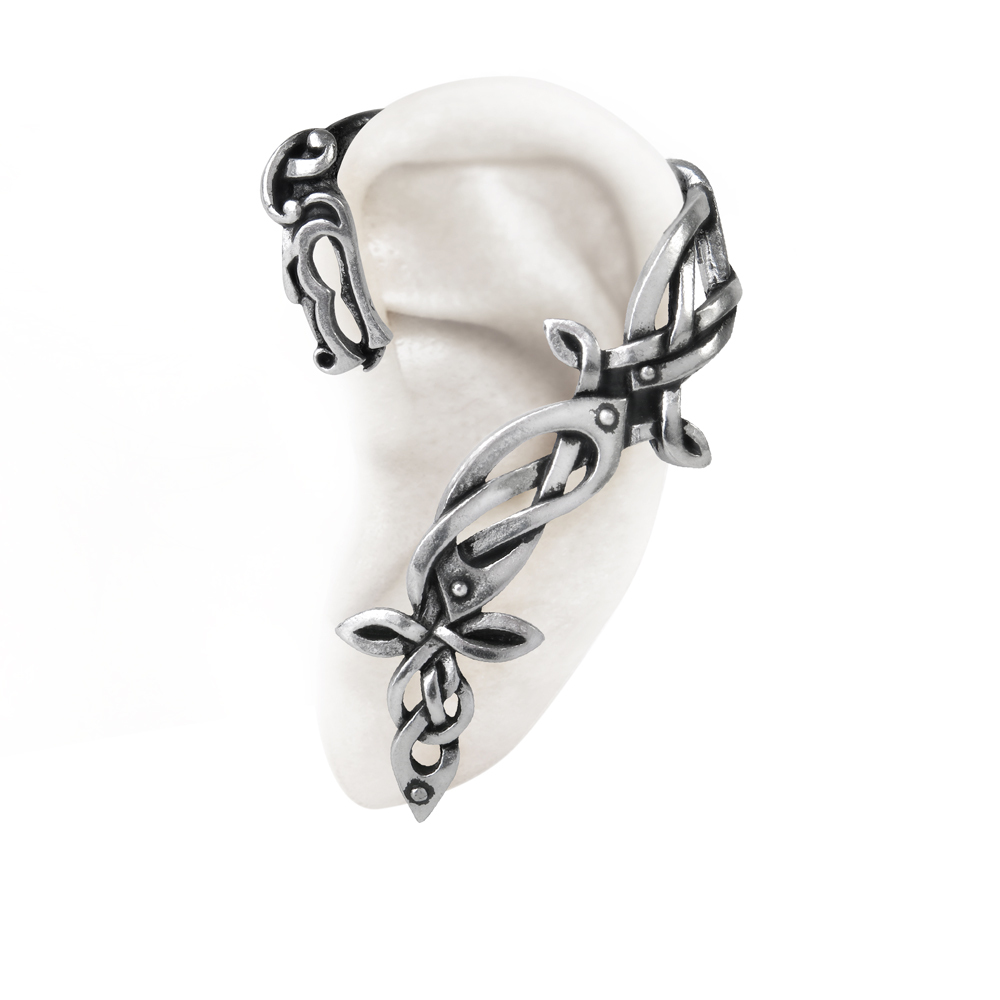 Сплетенный кельтский дракон, вдохновленный замысловатой резьбой по дереву в стиле скандинавского узора, украшавший великий корабль викингов IX века, был обнаружен под курганом в Норвегии. Отполированный узор в кельтском стиле обертывается вокруг уха, голова дракона появляется из-за верхней части уха. Ее можно мягко согнуть, чтобы удобно подогнать под собственный размер уха; крепление - гвоздик из хирургической стали и силиконовая заглушка. Для левого уха. Вес и размеры: H: 79 мм (3,11 дюйма) W: 44 мм (1,73 дюйма) D: 16 мм (0,63 дюйма) Вес: 15 г (0,53 унции).