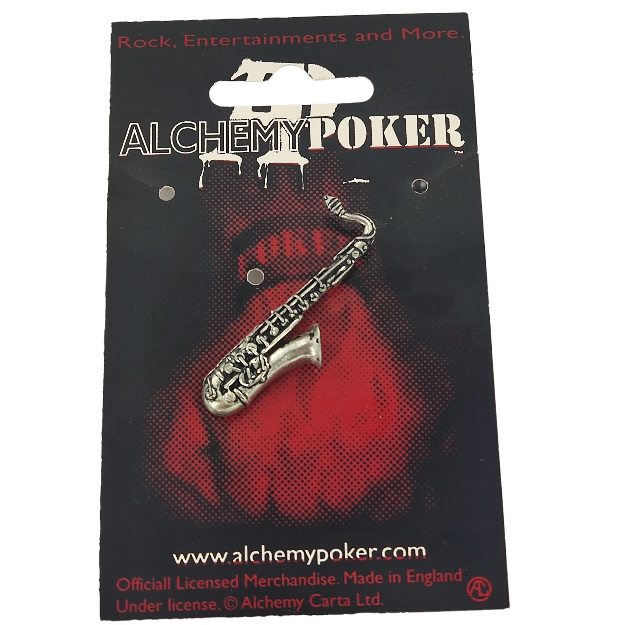 Брошь в виде Саксофона от Alchemy Rocks изготовлена вручную в Англии из пьютера и имеет серебряное покрытие. Высокодетализированый значок не оставит равнодушным любителя музыки как классической так и других жанров, он гармонично впишется в любой стиль одежды. Имеет две булавки крепления подходящие больше к плотной ткани сумки\рюкзака или воротничка.