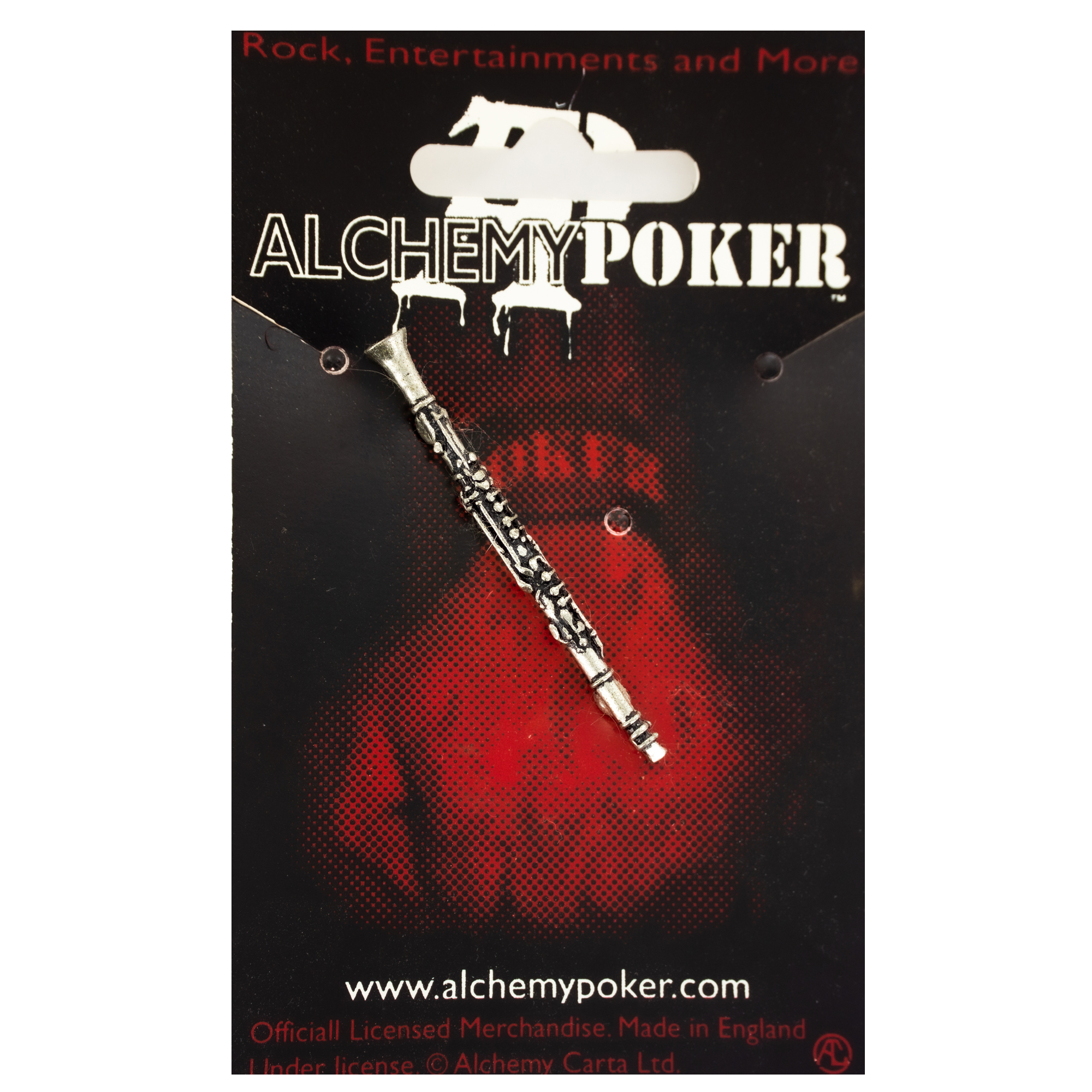 Брошь в виде кларнета от Alchemy Rocks изготовлена вручную в Англии из пьютера и имеет серебряное покрытие. Высокодетализированый значок не оставит равнодушным любителя музыки как классической так и других жанров, он гармонично впишется в любой стиль одежды. Имеет две булавки крепления подходящие больше к плотной ткани сумки\рюкзака или воротничка. Размеры 6х0,5,х0,5 см