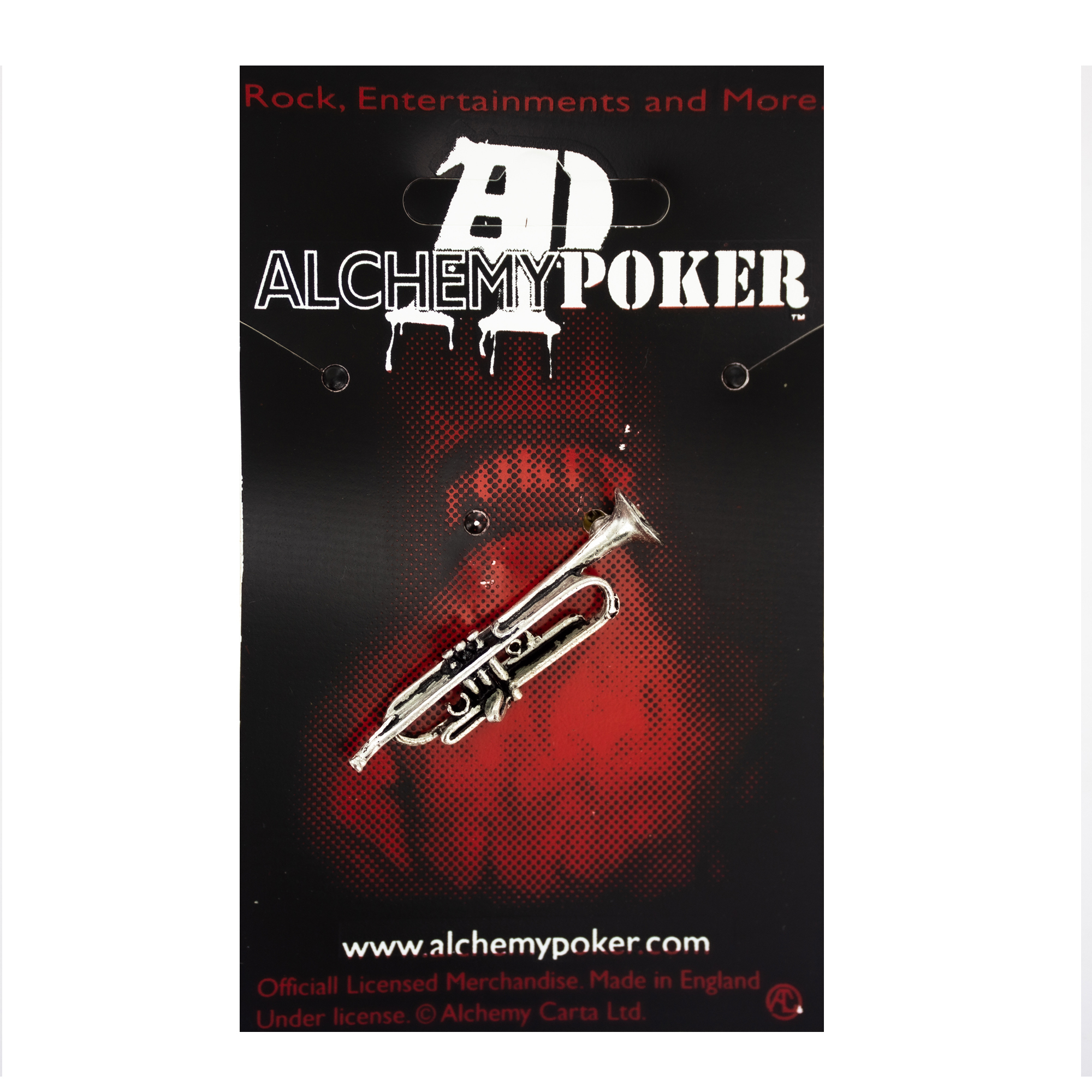 Брошь в виде Трубы от Alchemy Rocks изготовлена в Англии из пьютера и имеет серебряное покрытие. Высокодетализированый значок не оставит равнодушным любителя музыки как классической так и других жанров, он гармонично впишется в любой стиль одежды. Имеет одну булавку крепления подходящую больше к плотной ткани сумки\рюкзака или воротничка.