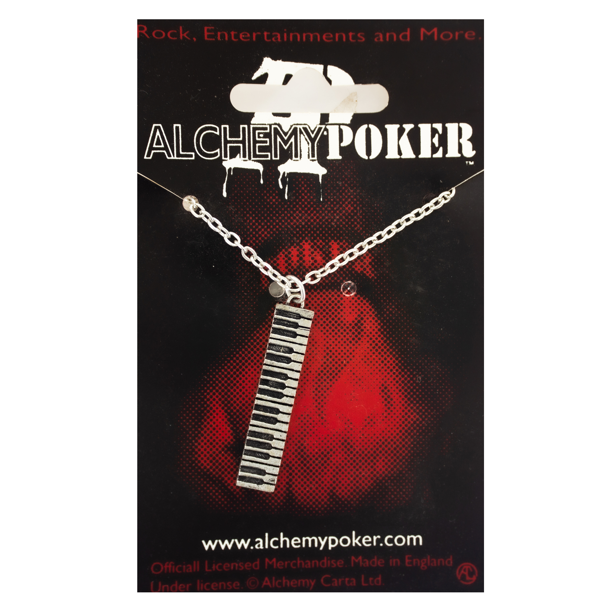 Подвеска виде клавишных от Alchemy Rocks изготовлена в Англии из пьютера. Высокодетализированая подвеска не оставит равнодушным любителя музыки как классической так и других жанров, она гармонично впишется в любой стиль одежды. Идет в комплекте с цепочкой.