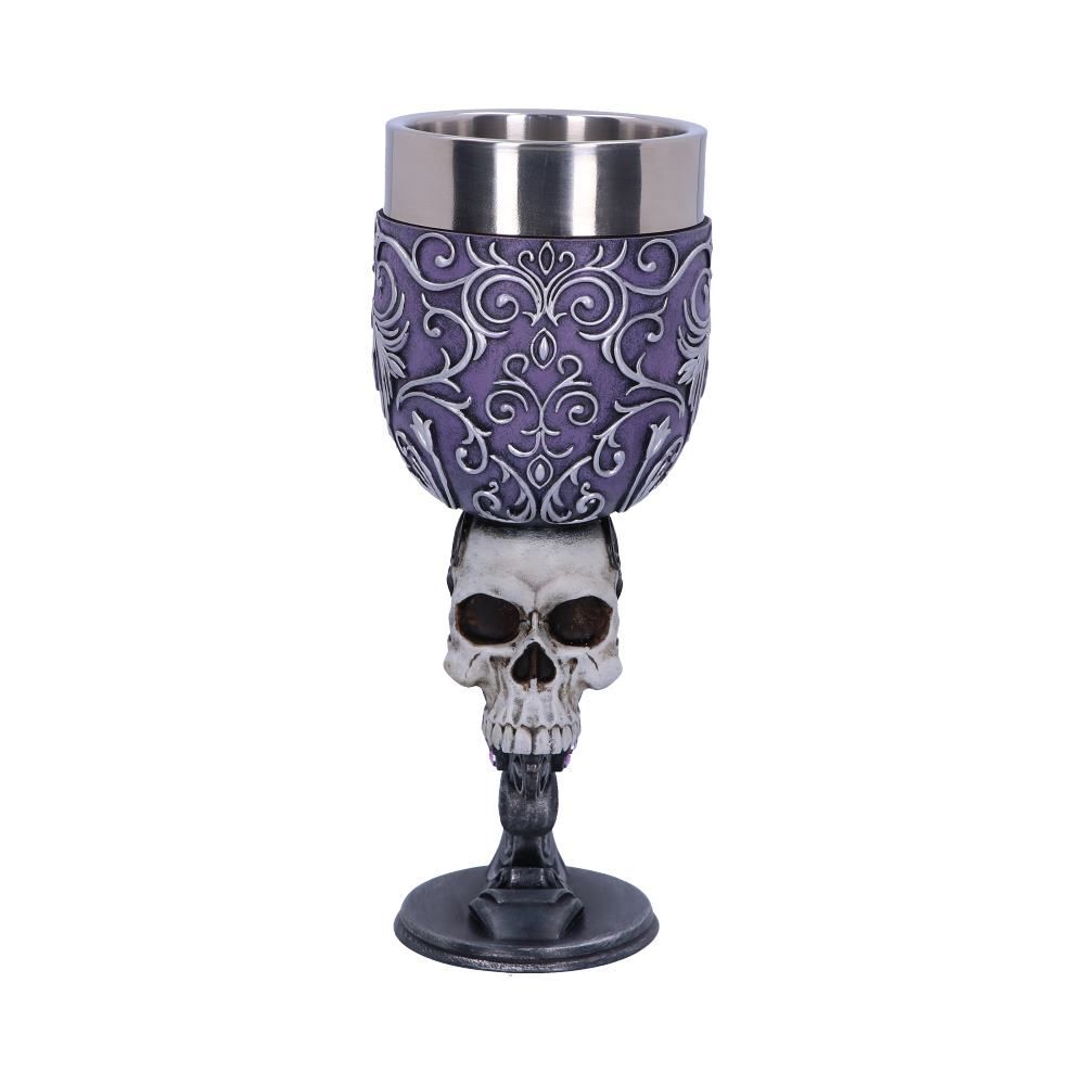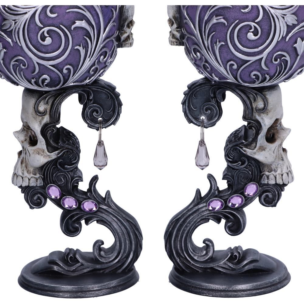 "Когда я смотрю в твои глаза, я вижу обещание любви" Украшенный сложными серебряными барочными деталями, поднимающимися от металлического основания к ободку из нержавеющей стали, этот кубок станет прекрасным дополнением к любой коллекции Fantasy. В центре тщательно вылепленной ножки находится выступающий вперед макабрический череп. Над ним располагается еще один череп меньшего размера, а позади него висит драгоценный камень в форме капли. Отлитые из высококачественного полистоуна и тщательно раскрашенные вручную, эти кубки Deaths Desire могут быть соединены вместе, чтобы сформировать форму сердца, идеальную для того, чтобы разделить ее с вашей мистической любовью. Предназначен для использования по прямому назначению, а так же в декоративных целях. Мыть только вручную. Объем бокала - 200 гр. 18 см.